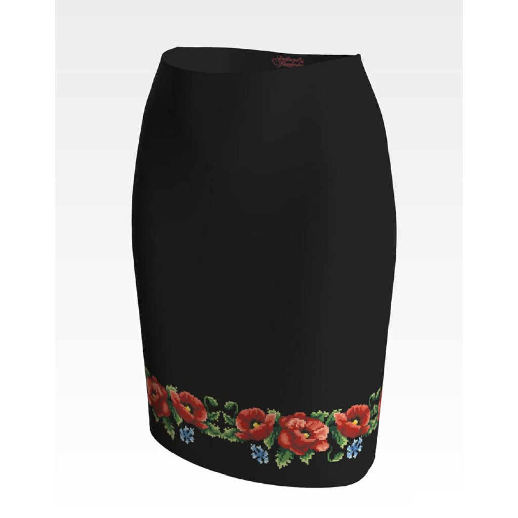СЖ003шЧнннн Барвиста вишиванка Заготовка для вишивки - Спідниця жіноча Маки, волошки р.42-54 шовк, чорний