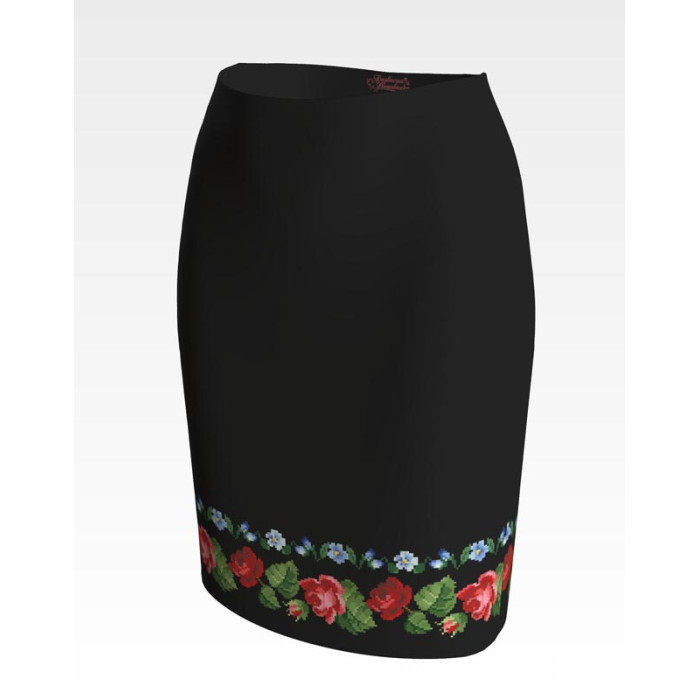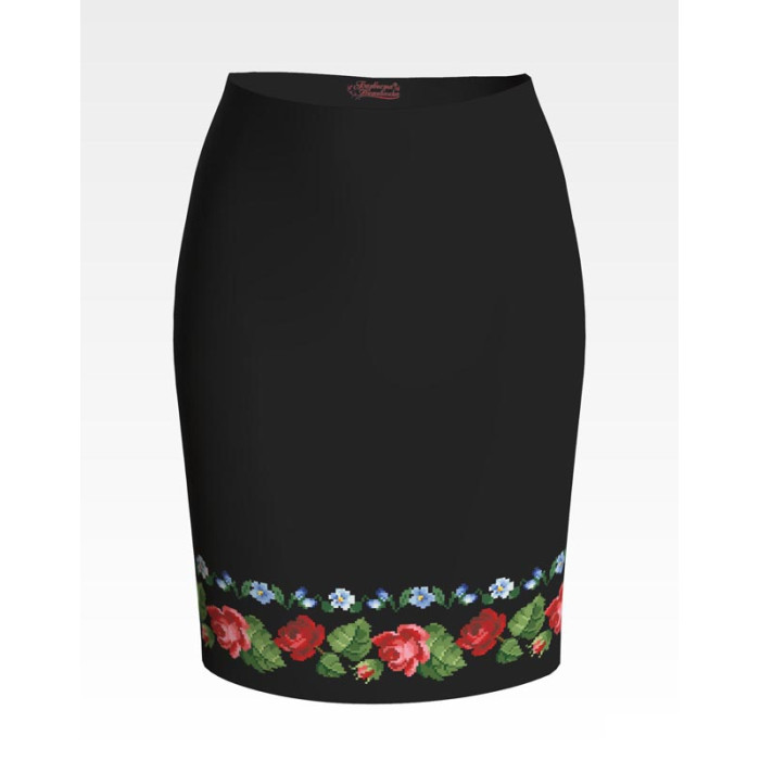 Заготовка для вишивки жіночої спідниці Троянди і незабудки призначена для часткової зашивки бісером або нитками. Схема надрукована на шовковій тканині чорного кольору екологічно чистими стійкими фарбами, що не змиваються після прання. Відрізи розкроєні з урахуванням запасів для зручного вишивання та подальшого пошиття виробу.