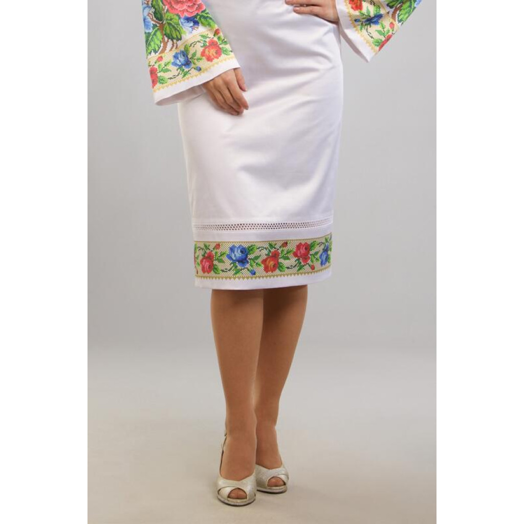 СЖ005пБнннн Барвиста вишиванка Заготовка для вишивки - Спідниця жіноча Багаті квіти. Буковинська р.42-54 габардин, білий