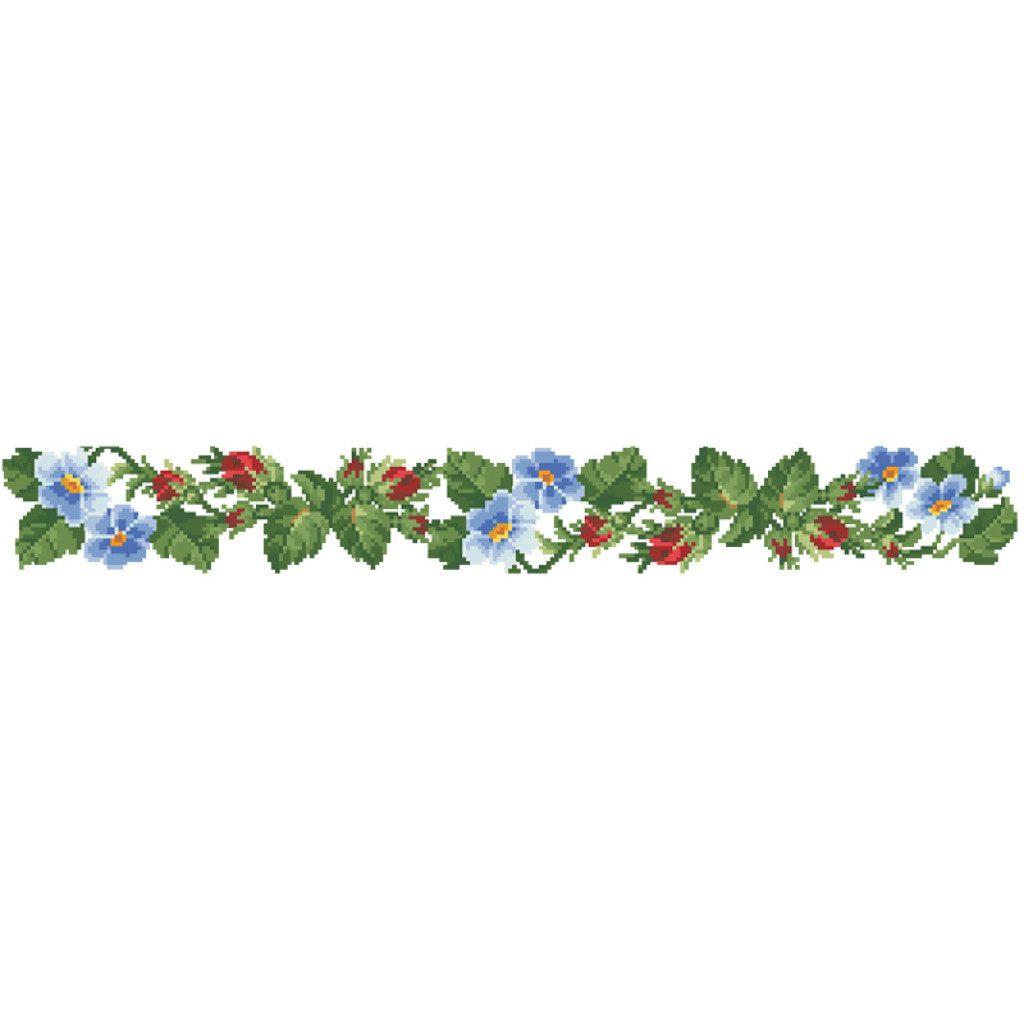 Заготовка для вишивки жіночої спідниці Королівські троянди, фіалки призначена для часткової зашивки бісером або нитками. Схема надрукована на шовковій тканині білого кольору екологічно чистими стійкими фарбами, що не змиваються після прання. Відрізи розкроєні з урахуванням запасів для зручного вишивання та подальшого пошиття виробу.