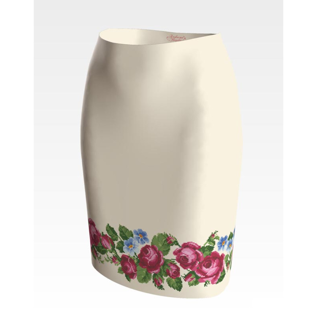 СЖ009шМнннн Барвиста вишиванка Заготовка для вишивки - Спідниця жіноча Рожеві троянди, фіалки р.42-54 шовк, бежевий