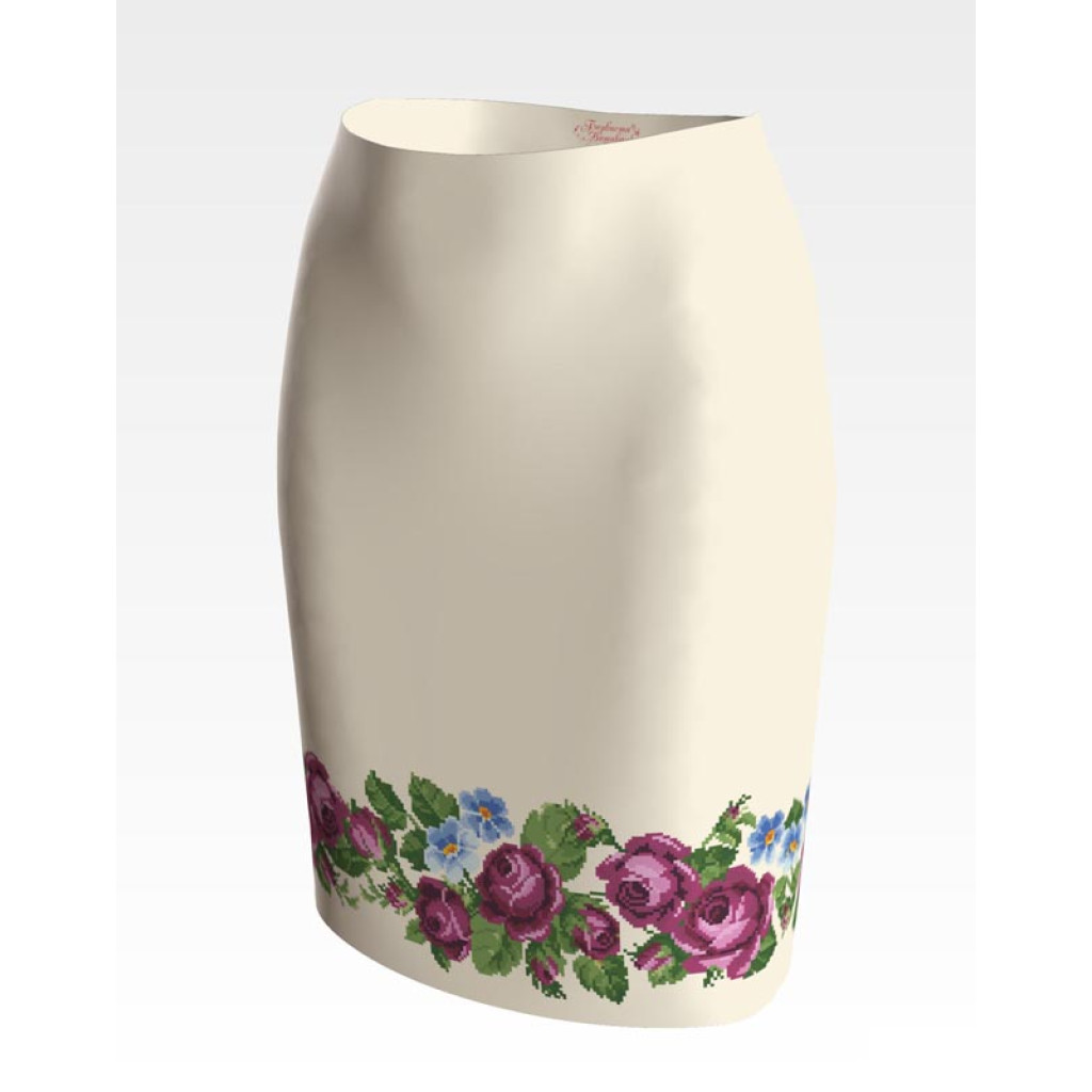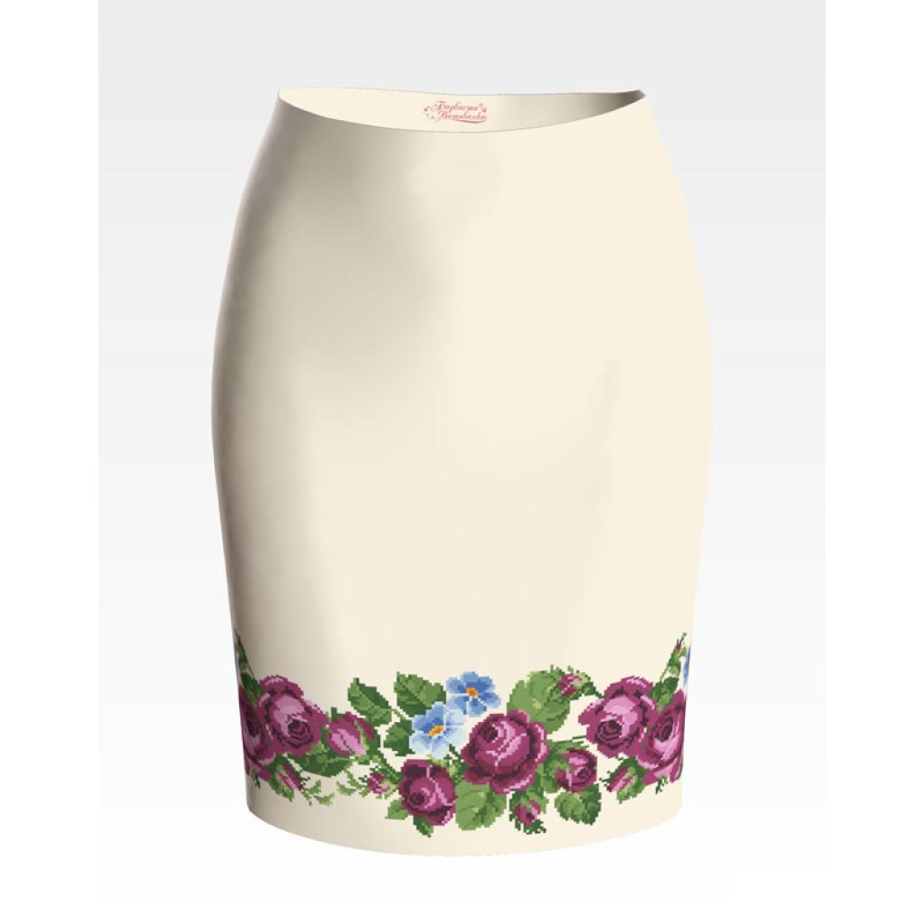 СЖ010кМнннн Барвиста вишиванка Заготовка для вишивки - Спідниця жіноча Лілові троянди, фіалки р.42-54 атлас, бежевий