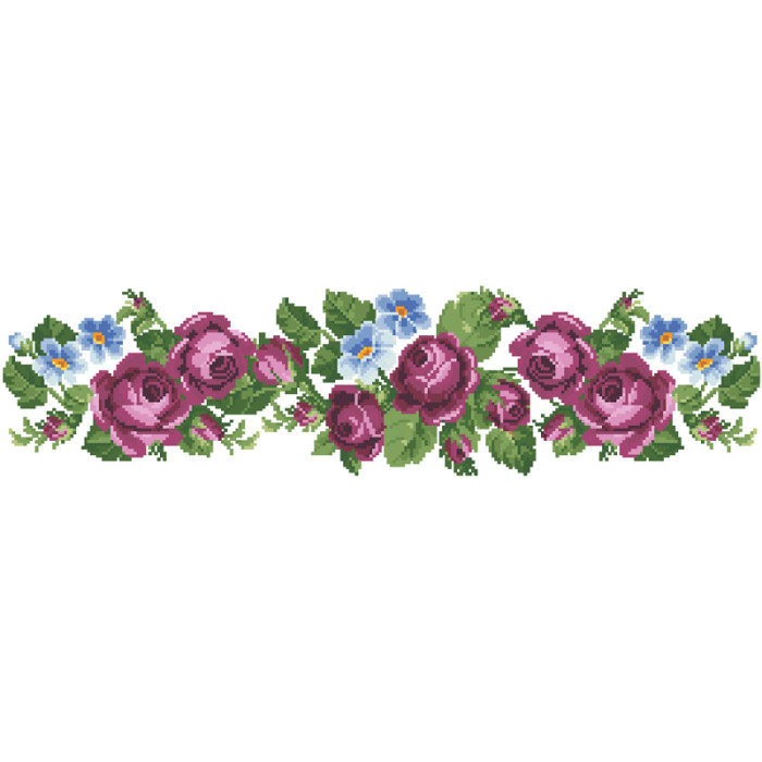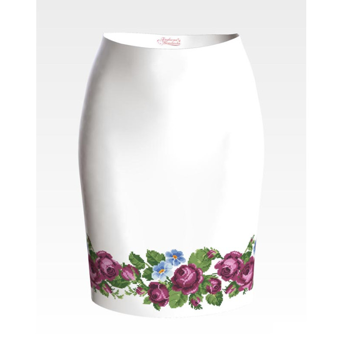 Заготовка для вишивки жіночої спідниці Лілові троянди, фіалки призначена для часткової зашивки бісером або нитками. Схема надрукована на шовковій тканині білого кольору екологічно чистими стійкими фарбами, що не змиваються після прання. Відрізи розкроєні з урахуванням запасів для зручного вишивання та подальшого пошиття виробу.