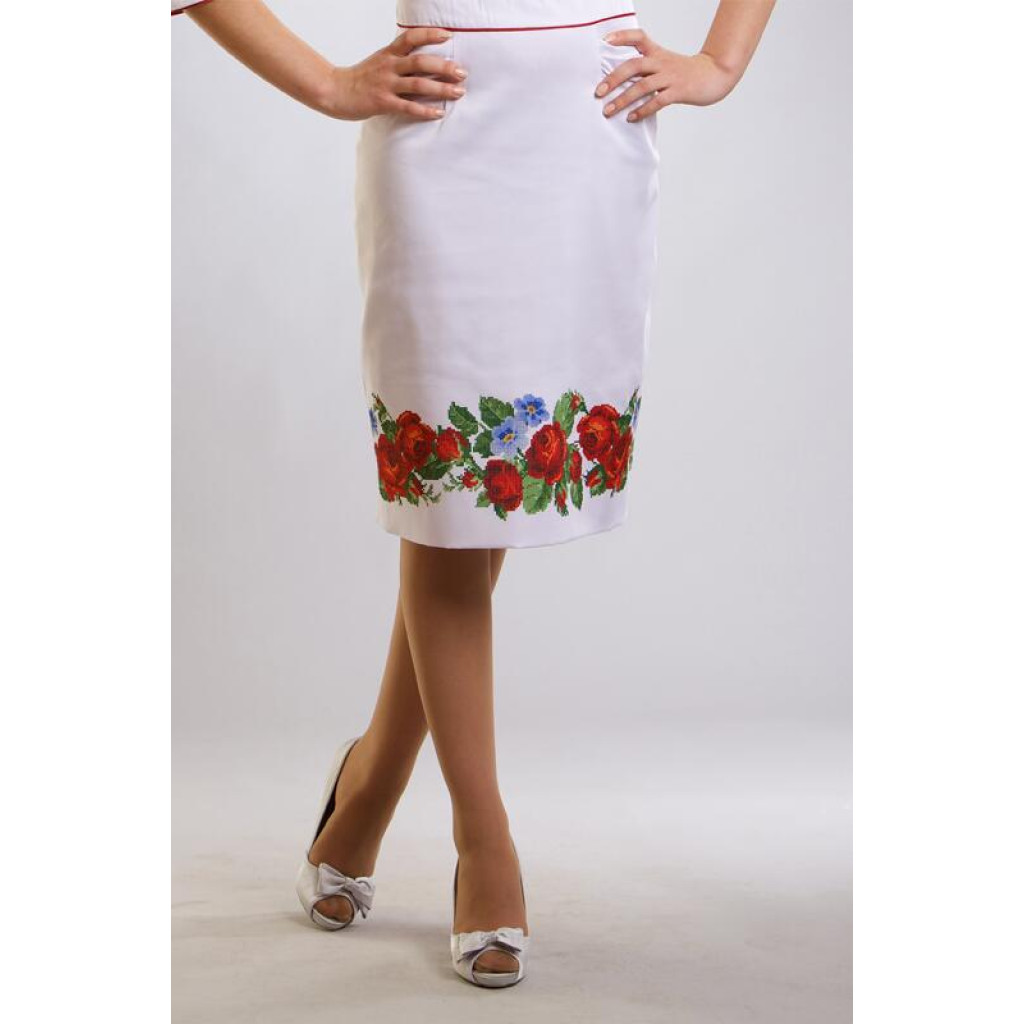 СЖ011дБнннн Барвиста вишиванка Заготовка для вишивки - Спідниця жіноча Пристрасні троянди, фіалки р.42-54 домоткане полотно, білий