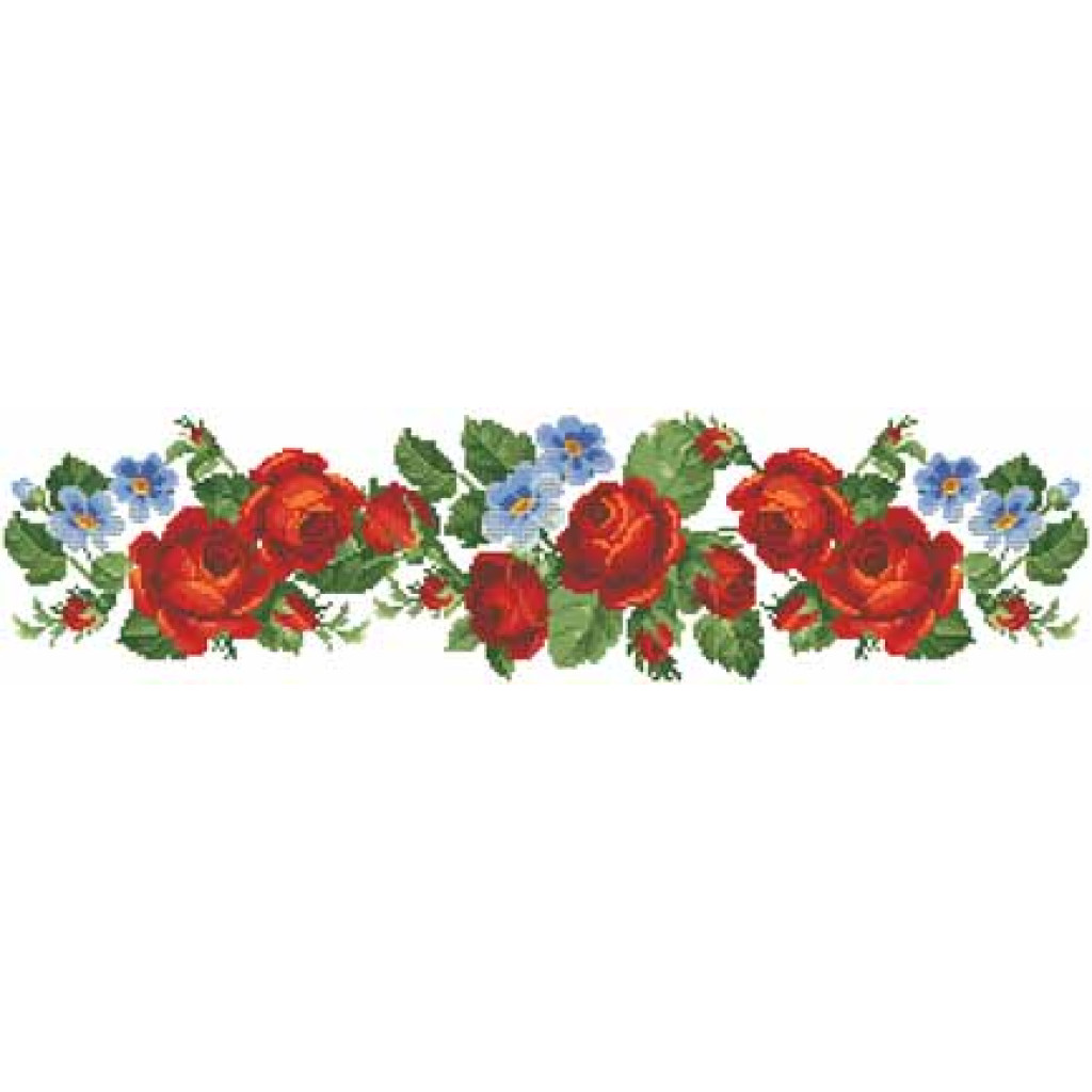 Заготовка для вишивки жіночої спідниці Пристрасні троянди, фіалки призначена для часткової зашивки бісером або нитками. Схема надрукована на домотканому полотні білого кольору екологічно чистими стійкими фарбами, що не змиваються після прання. Відрізи розкроєні з урахуванням запасів для зручного вишивання та подальшого пошиття виробу.