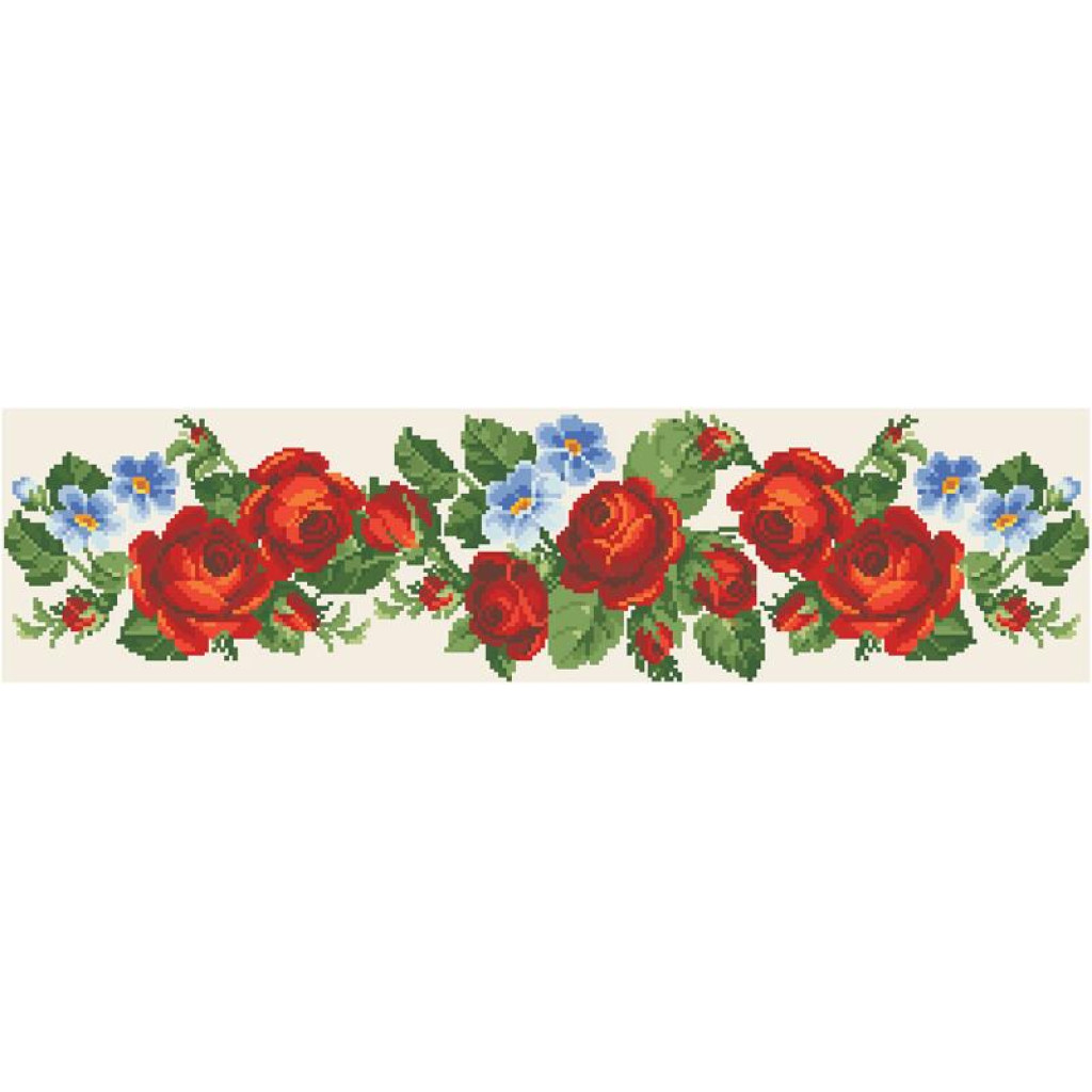 Заготовка для вишивки жіночої спідниці Пристрасні троянди, фіалки призначена для часткової зашивки бісером або нитками. Схема надрукована на атлас-котоні бежевого кольору екологічно чистими стійкими фарбами, що не змиваються після прання. Відрізи розкроєні з урахуванням запасів для зручного вишивання та подальшого пошиття виробу.