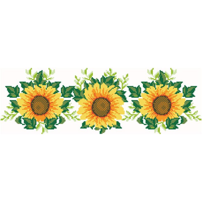 Заготовка для вишивки жіночої спідниці Соняхи призначена для часткової зашивки бісером або нитками. Схема надрукована на шовковій тканині білого кольору екологічно чистими стійкими фарбами, що не змиваються після прання. Відрізи розкроєні з урахуванням запасів для зручного вишивання та подальшого пошиття виробу.