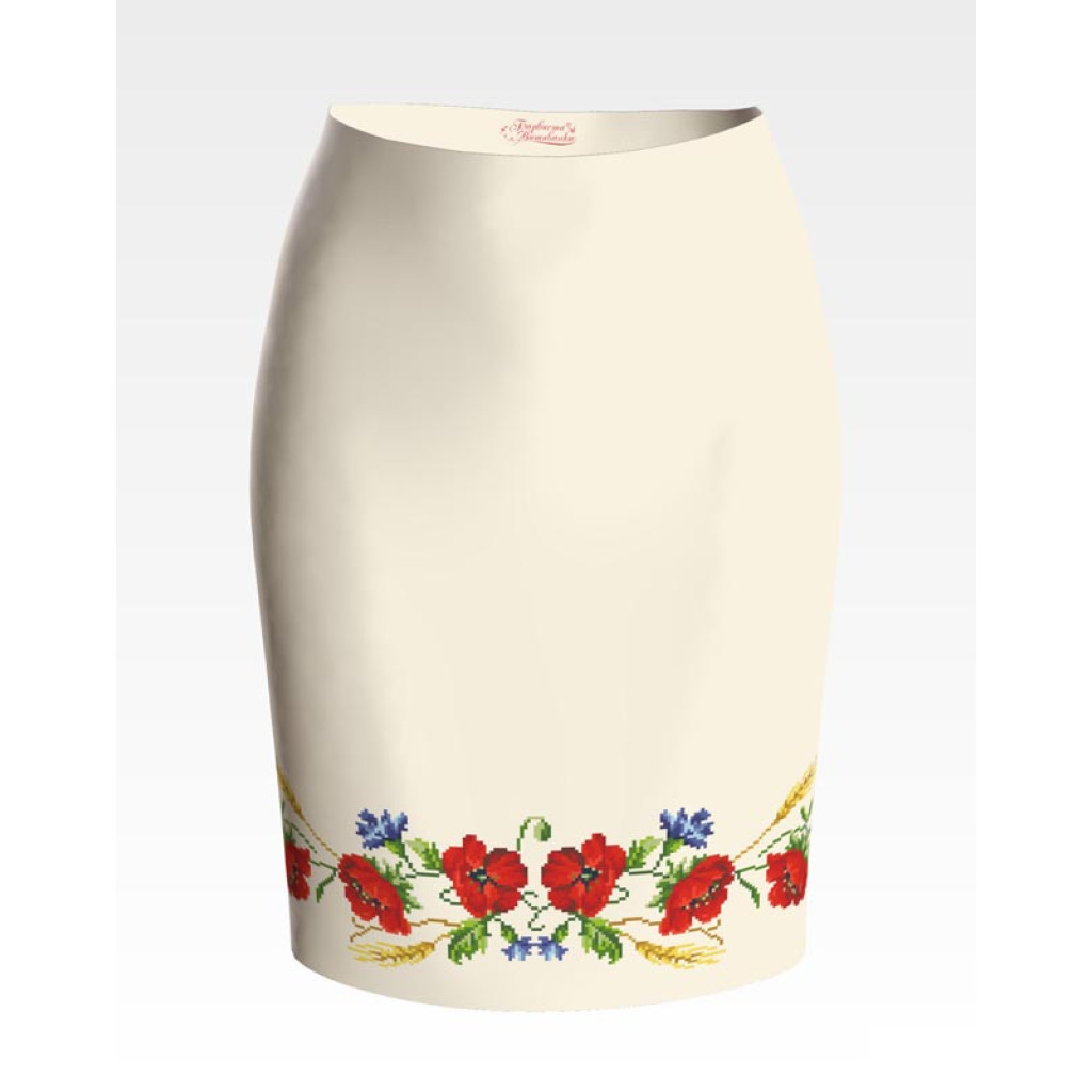 Заготовка для вишивки жіночої спідниці Маки, волошки, колоски призначена для часткової зашивки бісером або нитками. Схема надрукована на домотканому полотні бежевого кольору екологічно чистими стійкими фарбами, що не змиваються після прання. Відрізи розкроєні з урахуванням запасів для зручного вишивання та подальшого пошиття виробу.