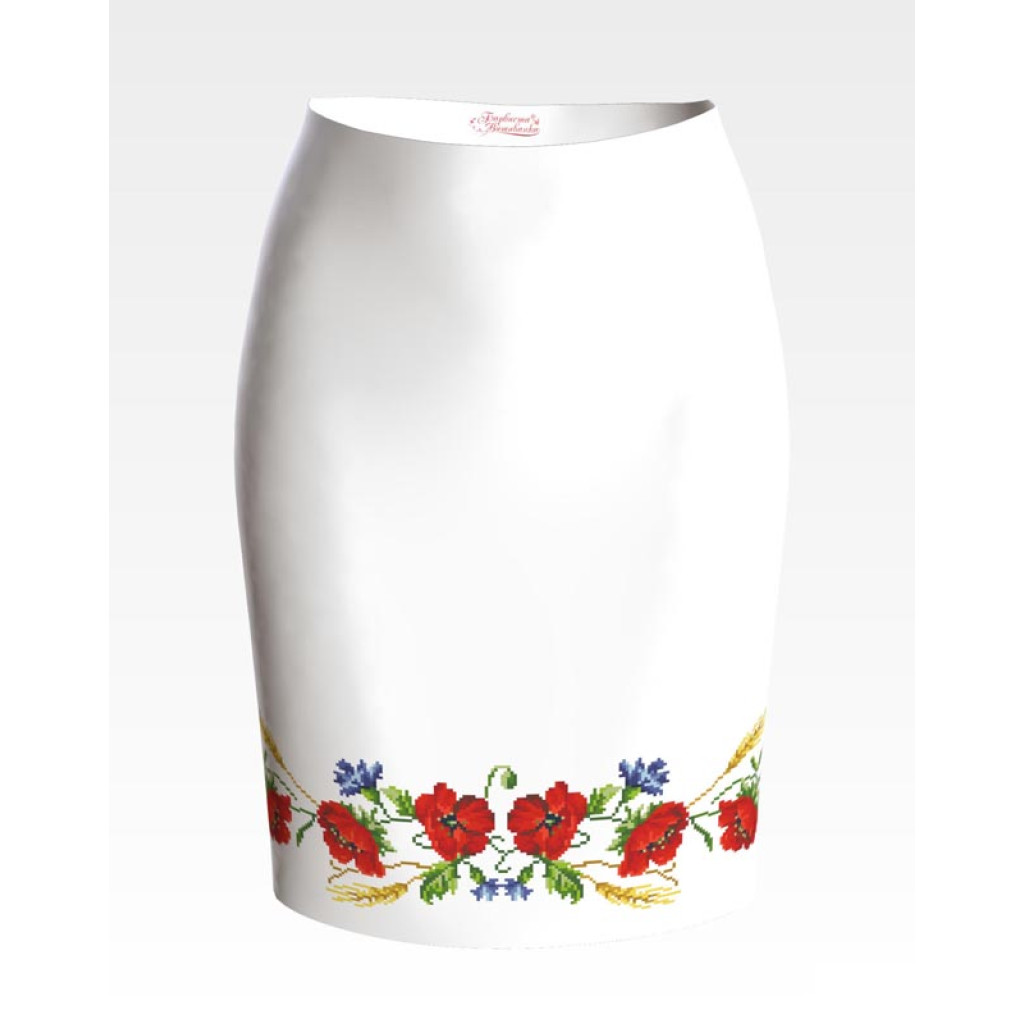СЖ013пБнннн Барвиста вишиванка Заготовка для вишивки - Спідниця жіноча Маки, волошки, колоски р.42-54 габардин, білий