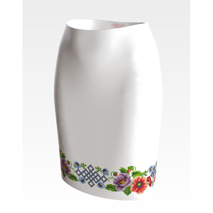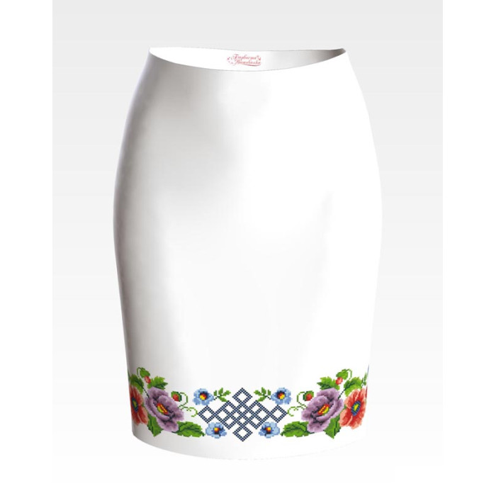 Заготовка для вишивки жіночої спідниці Маки і незабудки. Молодіжна призначена для часткової зашивки бісером або нитками. Схема надрукована на шовковій тканині білого кольору екологічно чистими стійкими фарбами, що не змиваються після прання. Відрізи розкроєні з урахуванням запасів для зручного вишивання та подальшого пошиття виробу.