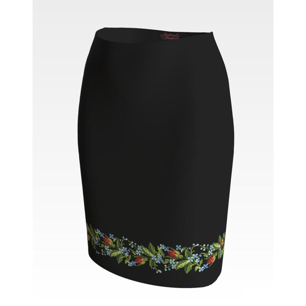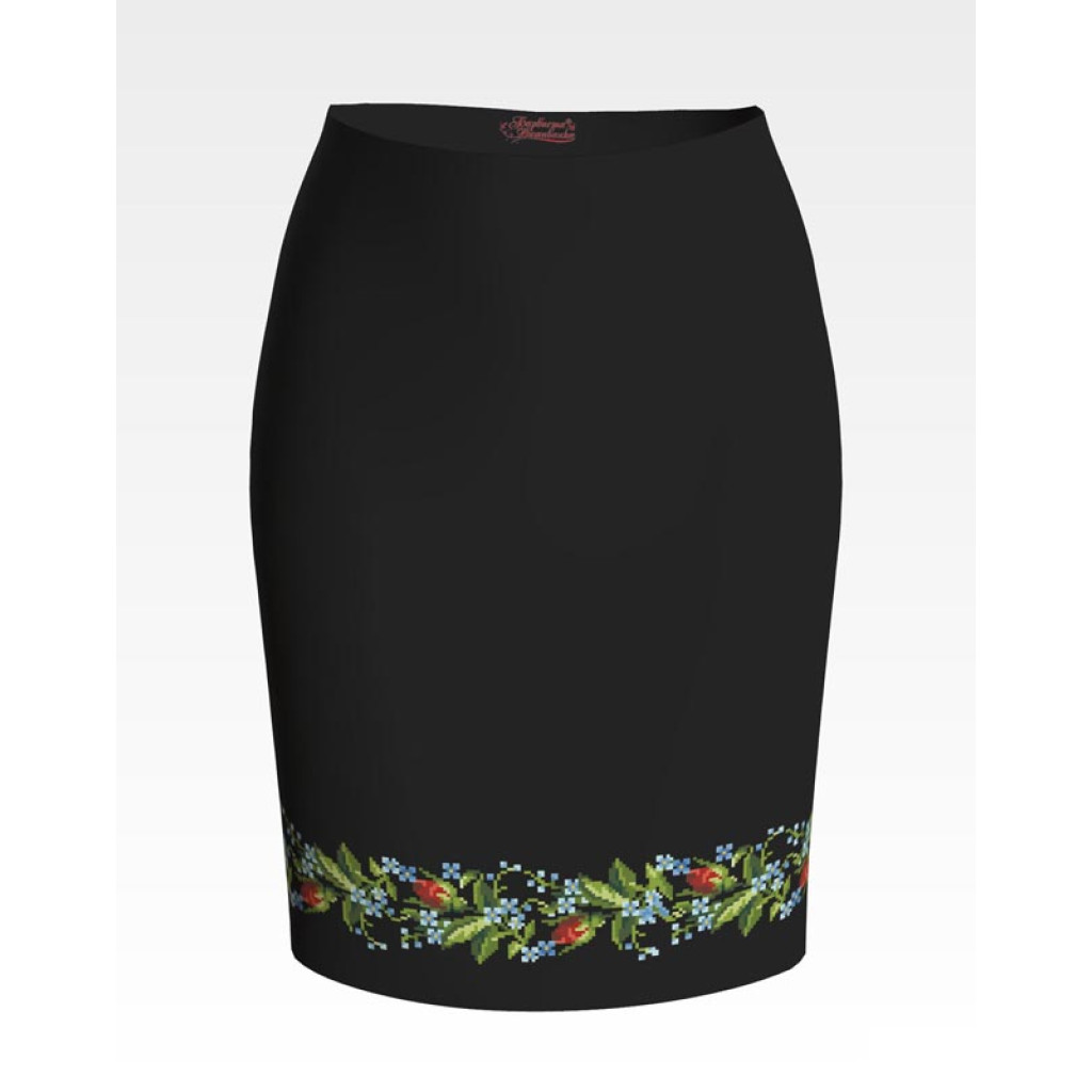 СЖ020кЧнннн Барвиста вишиванка Заготовка для вишивки - Спідниця жіноча Вишукані троянди, незабудки р.42-54 атлас, чорний