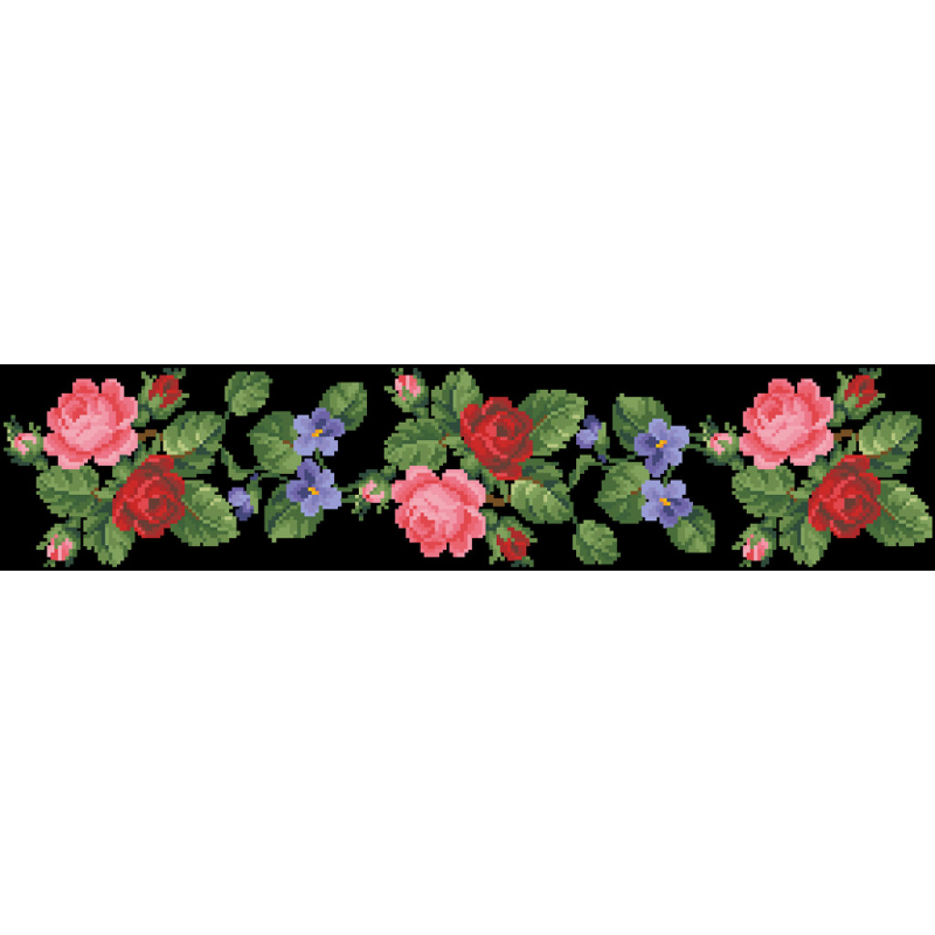 Заготовка для вишивки жіночої спідниці Троянди, фіалки, конвалії призначена для часткової зашивки бісером або нитками. Схема надрукована на атлас-котоні чорного кольору екологічно чистими стійкими фарбами, що не змиваються після прання. Відрізи розкроєні з урахуванням запасів для зручного вишивання та подальшого пошиття виробу.