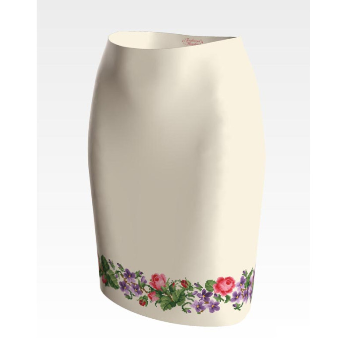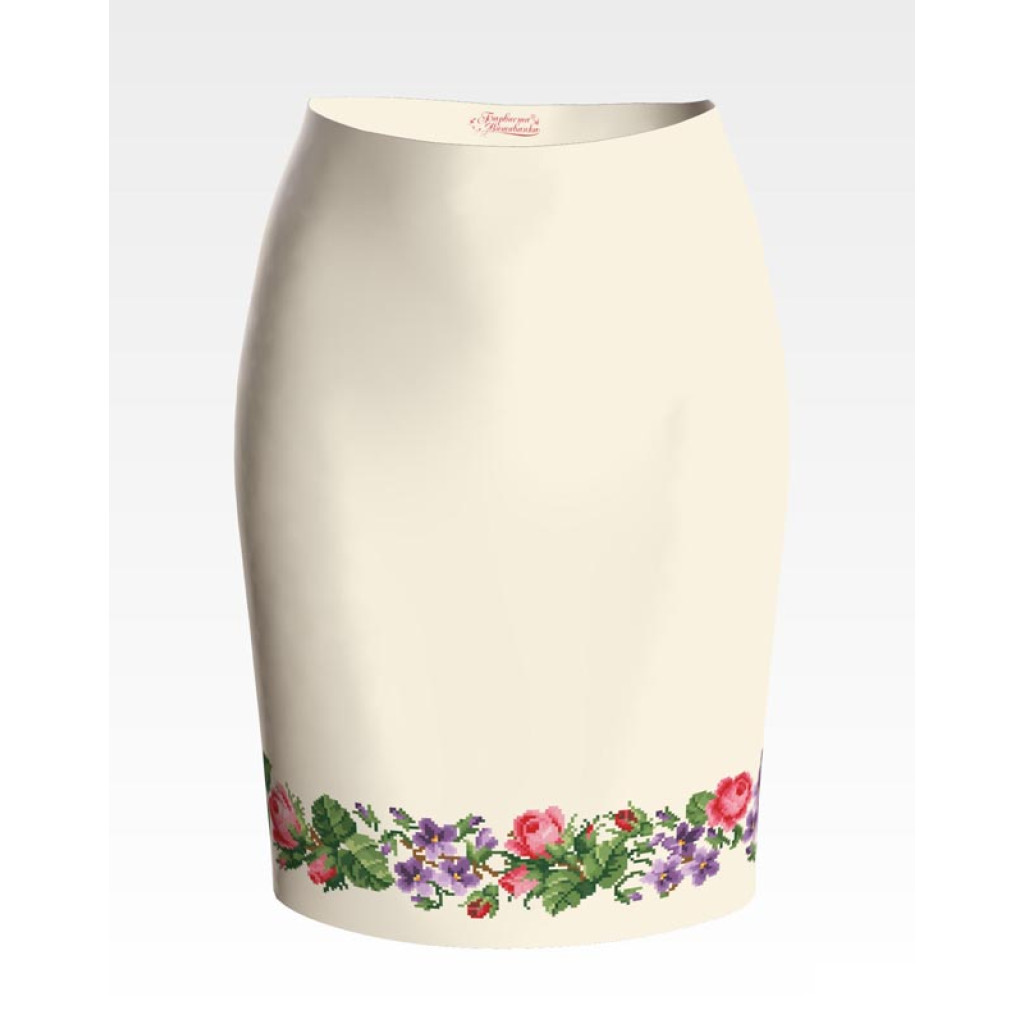Заготовка для вишивки жіночої спідниці Троянди і фіалки призначена для часткової зашивки бісером або нитками. Схема надрукована на атлас-котоні бежевого кольору екологічно чистими стійкими фарбами, що не змиваються після прання. Відрізи розкроєні з урахуванням запасів для зручного вишивання та подальшого пошиття виробу.