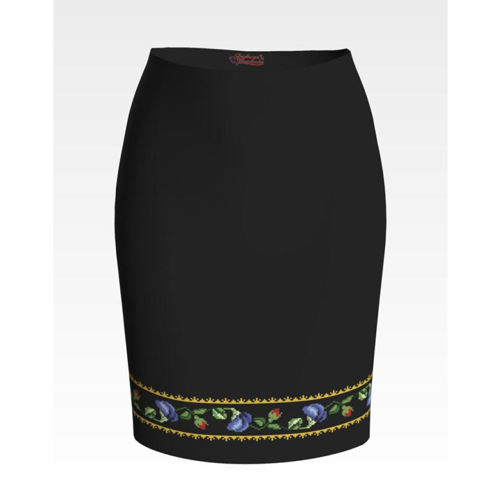 Заготовка для вишивки жіночої спідниці Мальви, троянди, братки призначена для часткової зашивки бісером або нитками. Схема надрукована на шовковій тканині чорного кольору екологічно чистими стійкими фарбами, що не змиваються після прання. Відрізи розкроєні з урахуванням запасів для зручного вишивання та подальшого пошиття виробу.