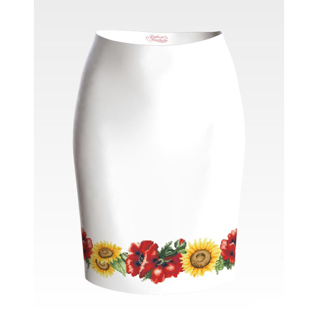 СЖ040шБнннн Барвиста вишиванка Заготовка для вишивки - Спідниця жіноча Маки і соняхи р.42-54 шовк, білий