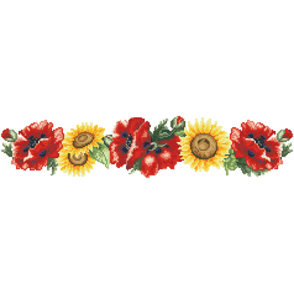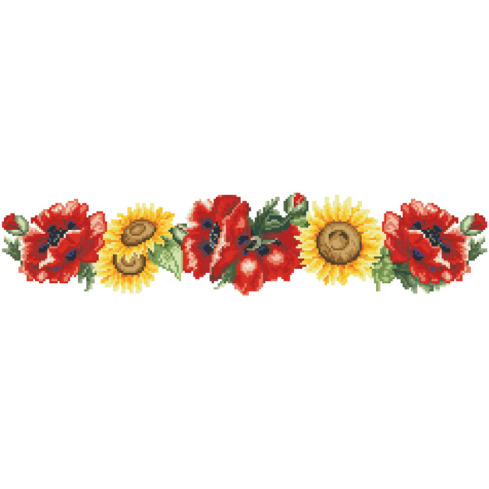 Заготовка для вишивки жіночої спідниці Маки і соняхи призначена для часткової зашивки бісером або нитками. Схема надрукована на шовковій тканині білого кольору екологічно чистими стійкими фарбами, що не змиваються після прання. Відрізи розкроєні з урахуванням запасів для зручного вишивання та подальшого пошиття виробу.