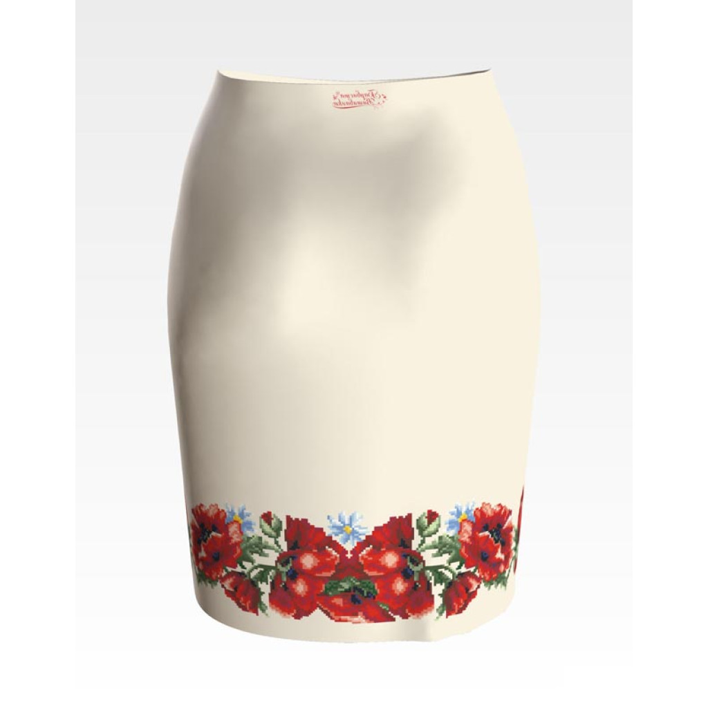 СЖ041кМнннн Барвиста вишиванка Заготовка для вишивки - Спідниця жіноча Маки червоні р.42-54 атлас, бежевий
