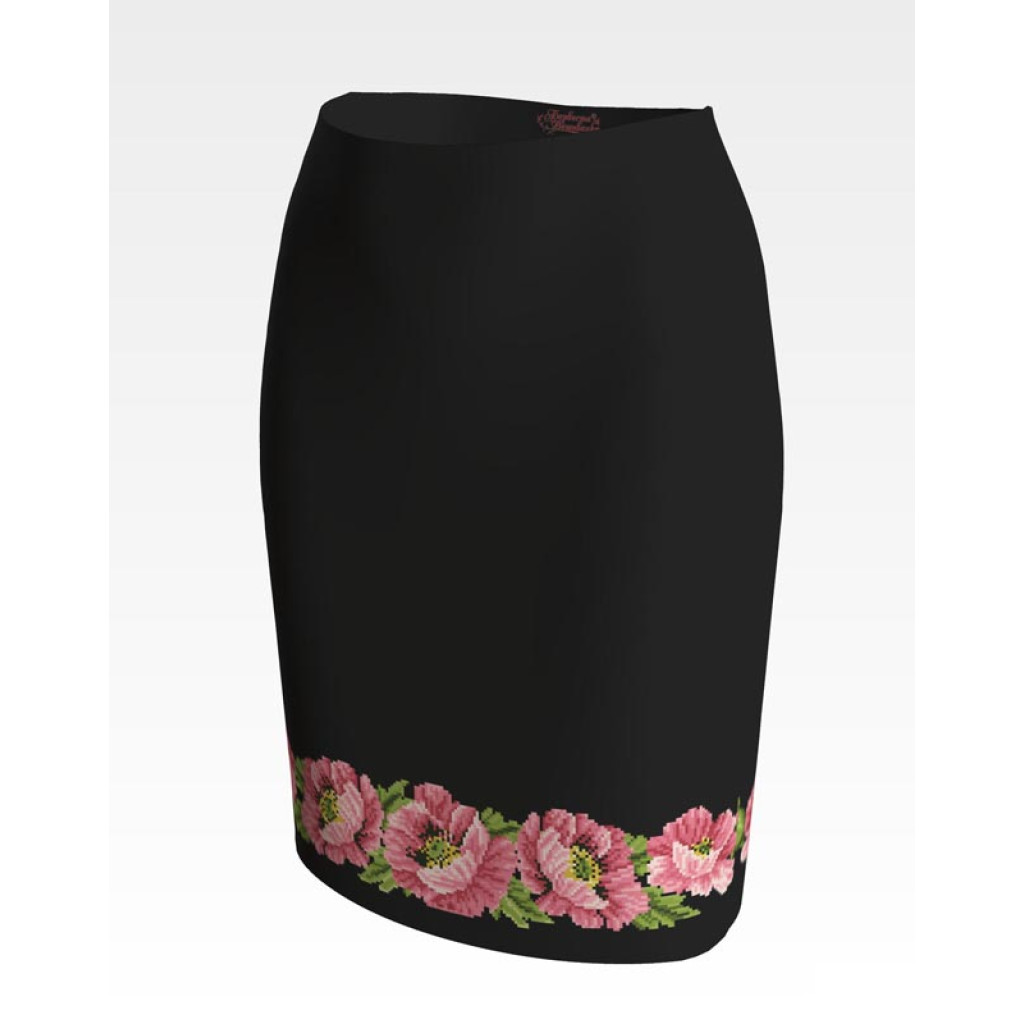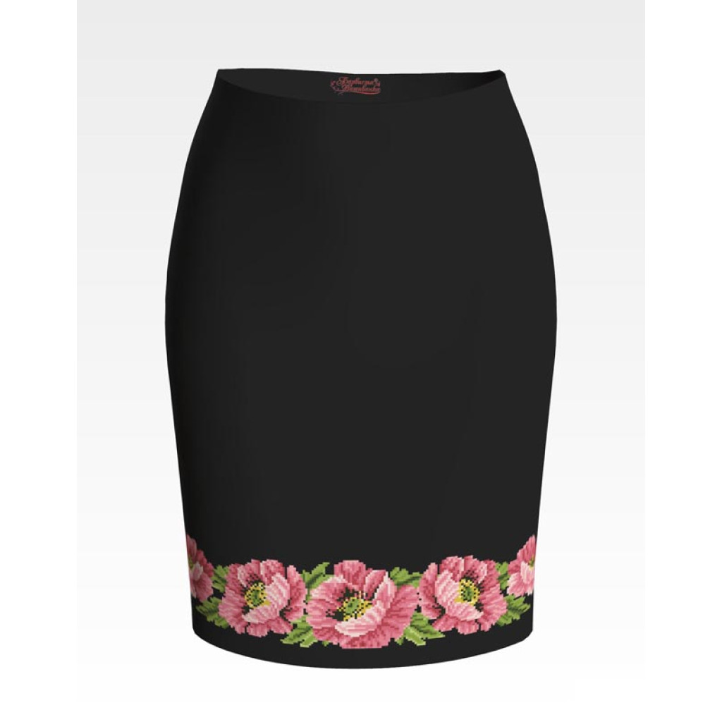 СЖ042шЧнннн Барвиста вишиванка Заготовка для вишивки - Спідниця жіноча Маки рожеві р.42-54 шовк, чорний