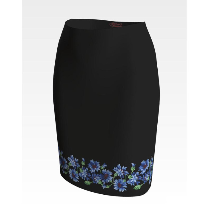 Заготовка для вишивки жіночої спідниці Волошки призначена для часткової зашивки бісером або нитками. Схема надрукована на шовковій тканині чорного кольору екологічно чистими стійкими фарбами, що не змиваються після прання. Відрізи розкроєні з урахуванням запасів для зручного вишивання та подальшого пошиття виробу.