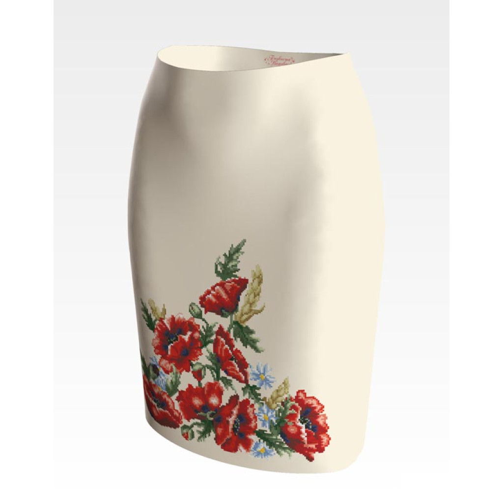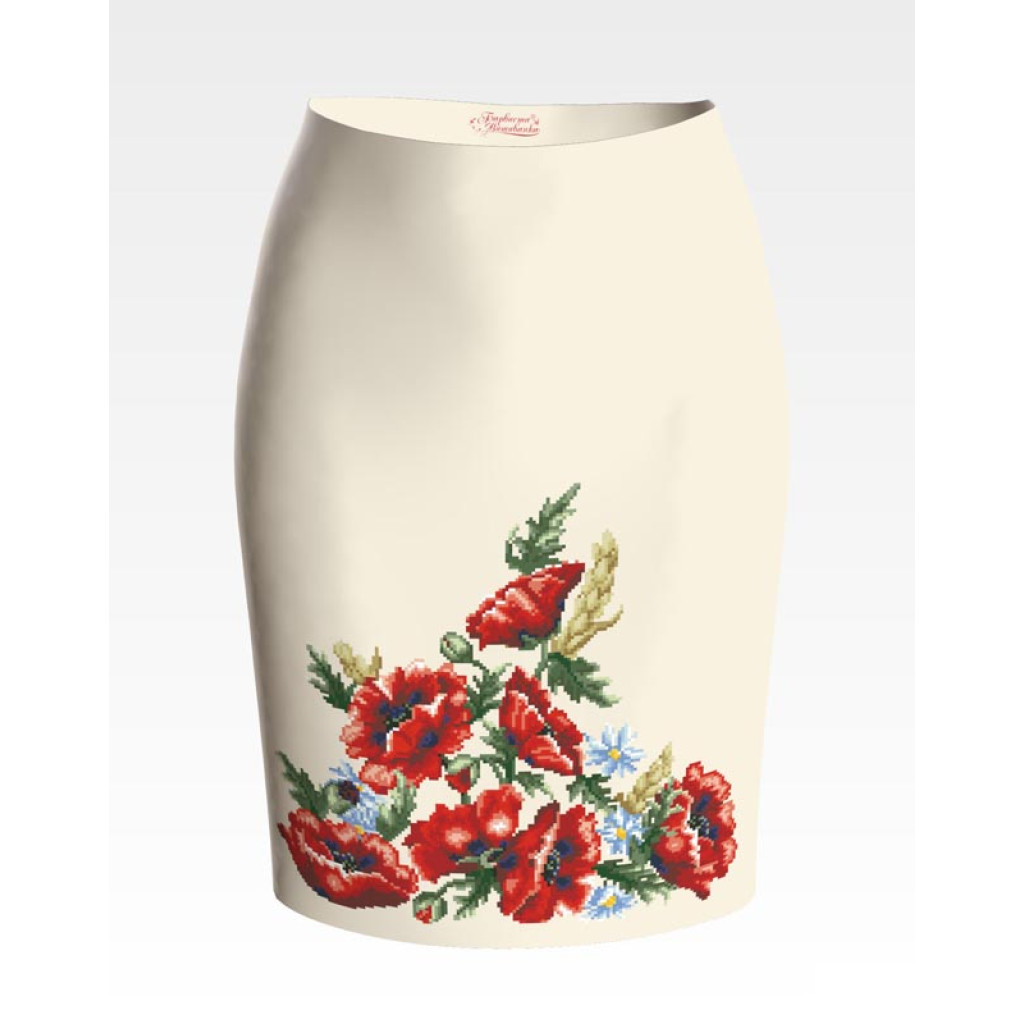 СЖ054шМнннн Барвиста вишиванка Заготовка для вишивки - Спідниця жіноча Червоні маки, ромашки, колоски р.42-54 шовк, бежевий