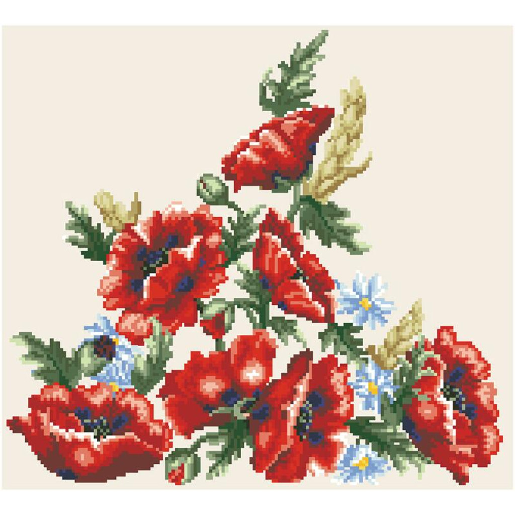 Заготовка для вишивки жіночої спідниці Червоні маки, ромашки, колоски призначена для часткової зашивки бісером або нитками. Схема надрукована на шовковій тканині бежевого кольору екологічно чистими стійкими фарбами, що не змиваються після прання. Відрізи розкроєні з урахуванням запасів для зручного вишивання та подальшого пошиття виробу.