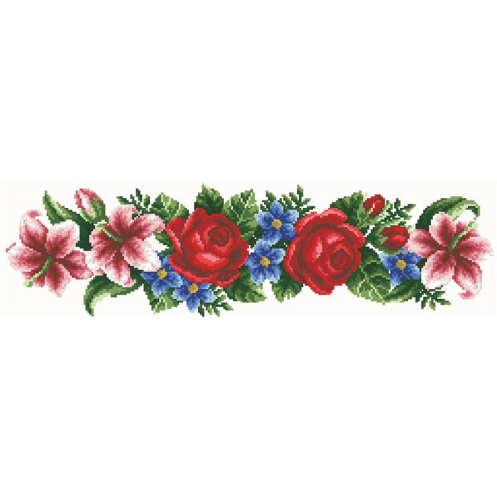 Заготовка для вишивки жіночої спідниці Лілеї, троянди, незабудки призначена для часткової зашивки бісером або нитками. Схема надрукована на білому габардині екологічно чистими стійкими фарбами, що не змиваються після прання. Відрізи розкроєні з урахуванням запасів для зручного вишивання та подальшого пошиття виробу.