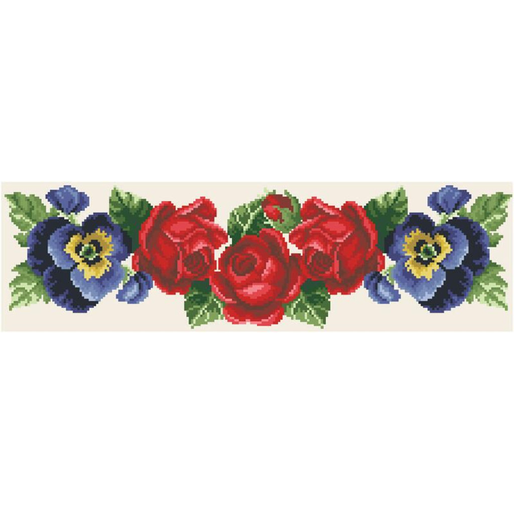 Заготовка для вишивки жіночої спідниці Троянди, братки, мальви призначена для часткової зашивки бісером або нитками. Схема надрукована на атлас-котоні бежевого кольору екологічно чистими стійкими фарбами, що не змиваються після прання. Відрізи розкроєні з урахуванням запасів для зручного вишивання та подальшого пошиття виробу.