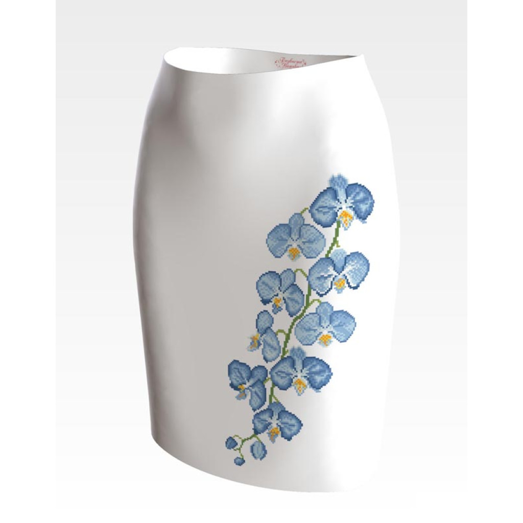 Заготовка для вишивки жіночої спідниці Блакитні орхідеї призначена для часткової зашивки бісером або нитками. Схема надрукована на шовковій тканині білого кольору екологічно чистими стійкими фарбами, що не змиваються після прання. Відрізи розкроєні з урахуванням запасів для зручного вишивання та подальшого пошиття виробу.