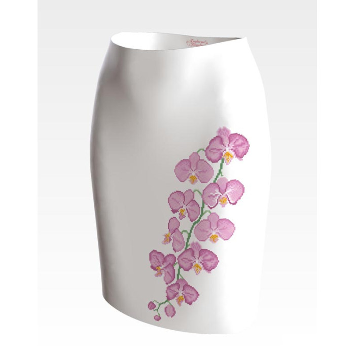 Заготовка для вишивки жіночої спідниці Ніжні орхідеї призначена для часткової зашивки бісером або нитками. Схема надрукована на шовковій тканині білого кольору екологічно чистими стійкими фарбами, що не змиваються після прання. Відрізи розкроєні з урахуванням запасів для зручного вишивання та подальшого пошиття виробу.