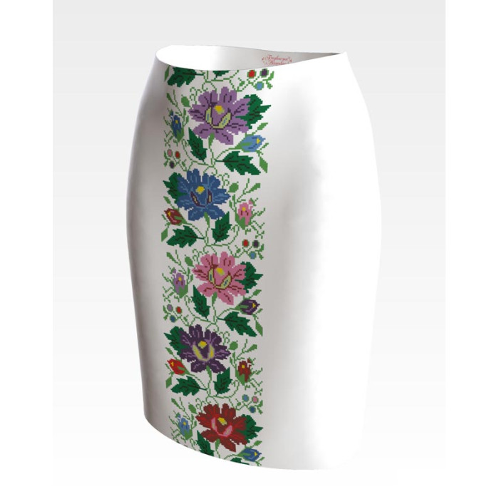 Заготовка для вишивки жіночої спідниці Буковинська сучасна призначена для часткової зашивки бісером або нитками. Схема надрукована на шовковій тканині білого кольору екологічно чистими стійкими фарбами, що не змиваються після прання. Відрізи розкроєні з урахуванням запасів для зручного вишивання та подальшого пошиття виробу.