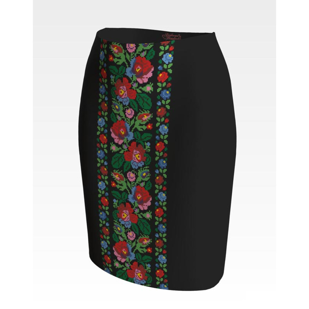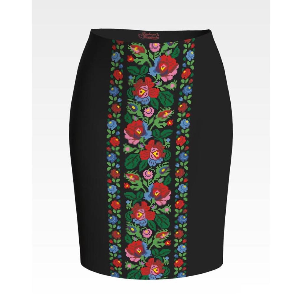 Заготовка для вишивки жіночої спідниці Буковинська сучасна призначена для часткової зашивки бісером або нитками. Схема надрукована на шовковій тканині чорного кольору екологічно чистими стійкими фарбами, що не змиваються після прання. Відрізи розкроєні з урахуванням запасів для зручного вишивання та подальшого пошиття виробу.
