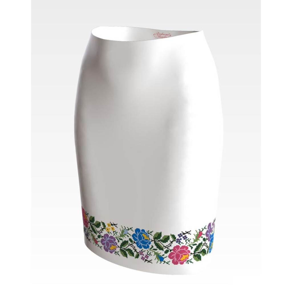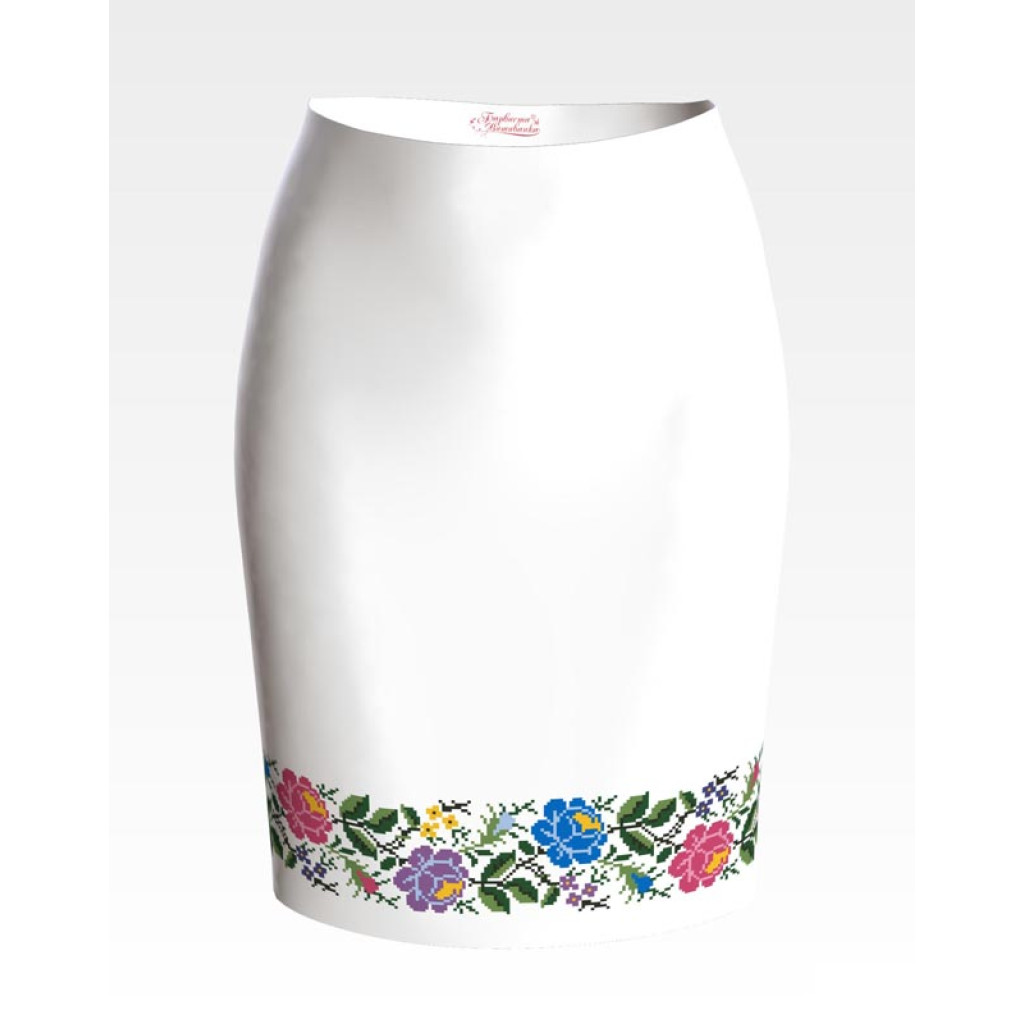 СЖ124пБнннн Барвиста вишиванка Заготовка для вишивки - Спідниця жіноча Одеська троянда р.42-54 габардин, білий