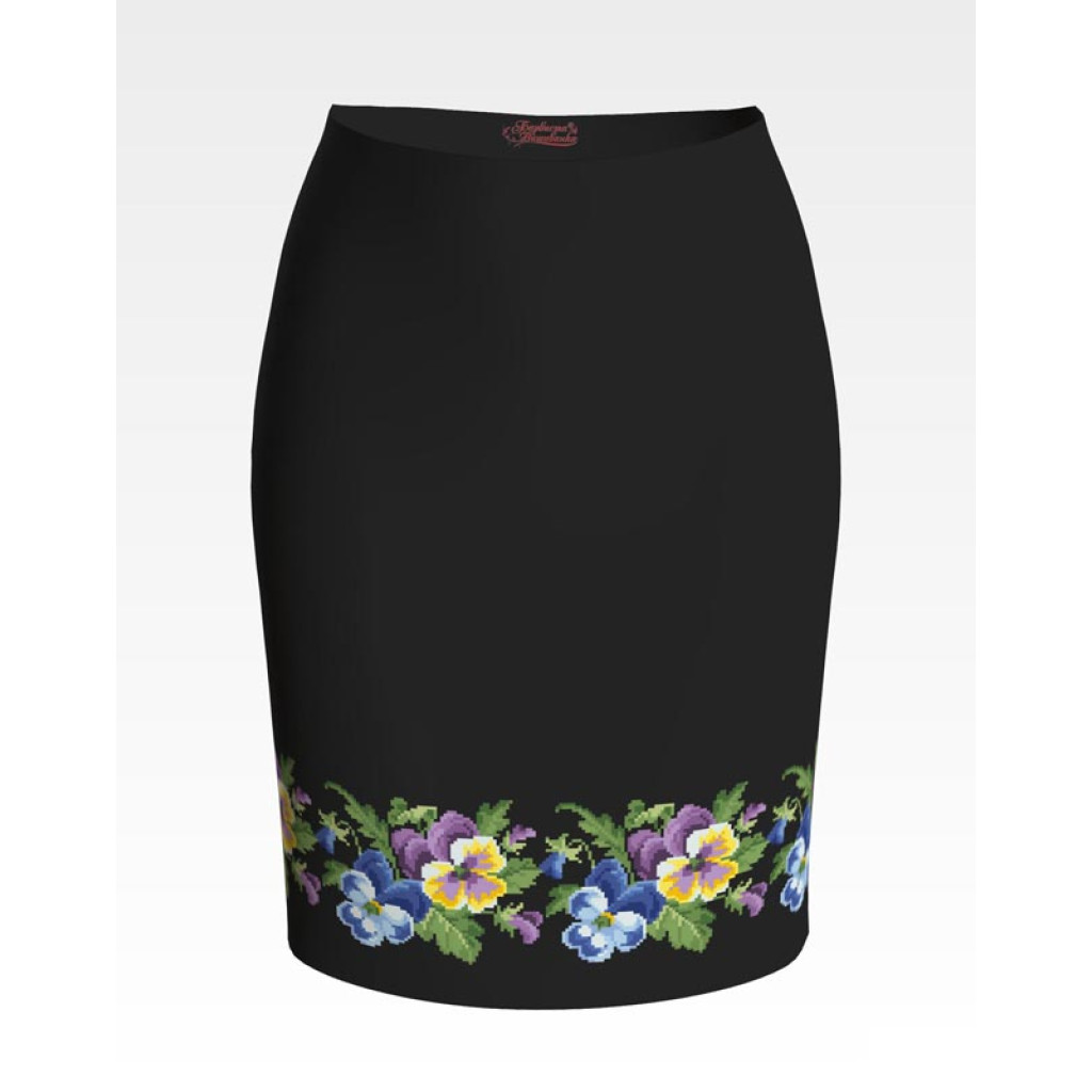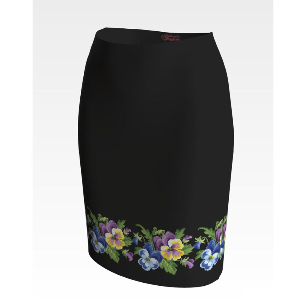 Заготовка для вишивки жіночої спідниці Елегантні братки призначена для часткової зашивки бісером або нитками. Схема надрукована на шовковій тканині чорного кольору екологічно чистими стійкими фарбами, що не змиваються після прання. Відрізи розкроєні з урахуванням запасів для зручного вишивання та подальшого пошиття виробу.