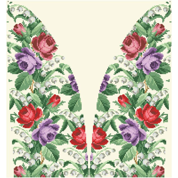 Заготовка для вишивки жіночої спідниці Троянди і конвалії призначена для часткової зашивки бісером або нитками. Схема надрукована на домотканому полотні бежевого кольору екологічно чистими стійкими фарбами, що не змиваються після прання. Відрізи розкроєні з урахуванням запасів для зручного вишивання та подальшого пошиття виробу.