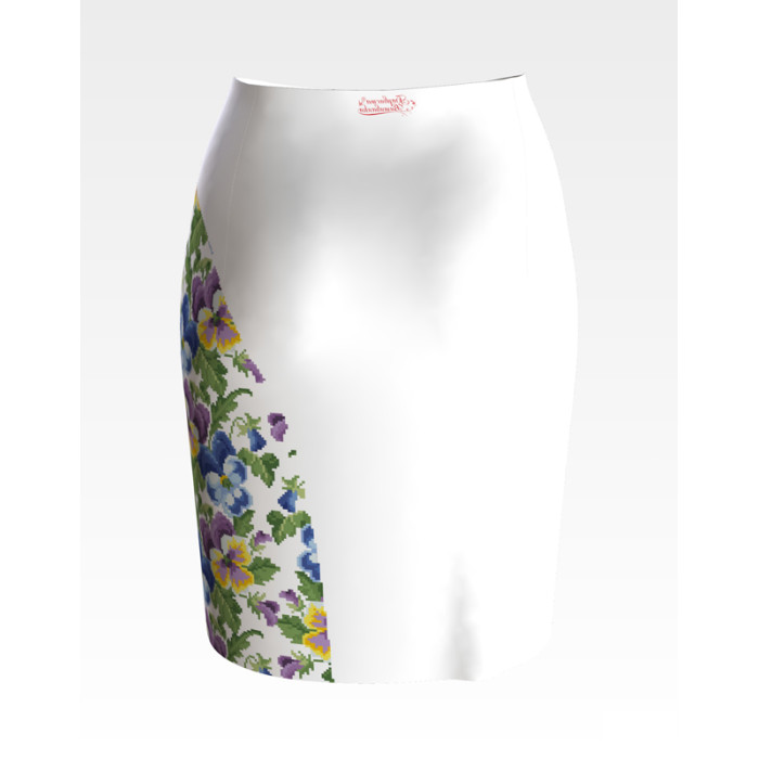 Заготовка для вишивки жіночої спідниці Братки призначена для часткової зашивки бісером або нитками. Схема надрукована на шовковій тканині білого кольору екологічно чистими стійкими фарбами, що не змиваються після прання. Відрізи розкроєні з урахуванням запасів для зручного вишивання та подальшого пошиття виробу.