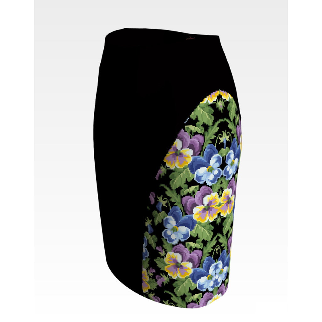 Заготовка для вишивки жіночої спідниці Братки призначена для часткової зашивки бісером або нитками. Схема надрукована на шовковій тканині чорного кольору екологічно чистими стійкими фарбами, що не змиваються після прання. Відрізи розкроєні з урахуванням запасів для зручного вишивання та подальшого пошиття виробу.