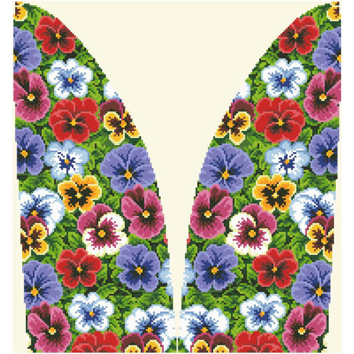 Заготовка для вишивки жіночої спідниці Мальовничі братки призначена для часткової зашивки бісером або нитками. Схема надрукована на шовковій тканині бежевого кольору екологічно чистими стійкими фарбами, що не змиваються після прання. Відрізи розкроєні з урахуванням запасів для зручного вишивання та подальшого пошиття виробу.
