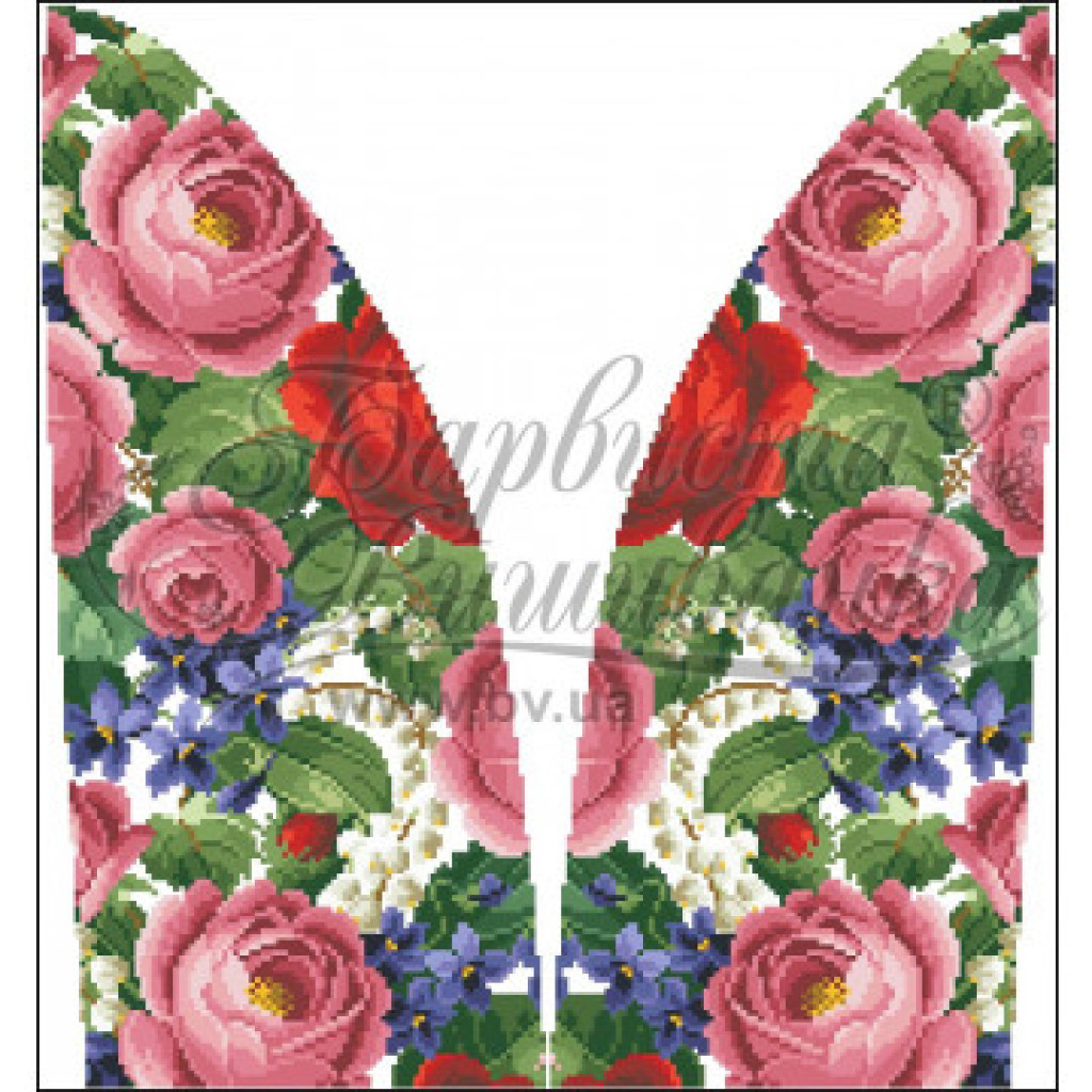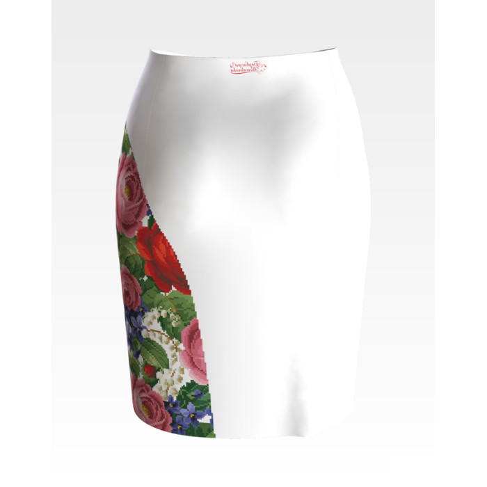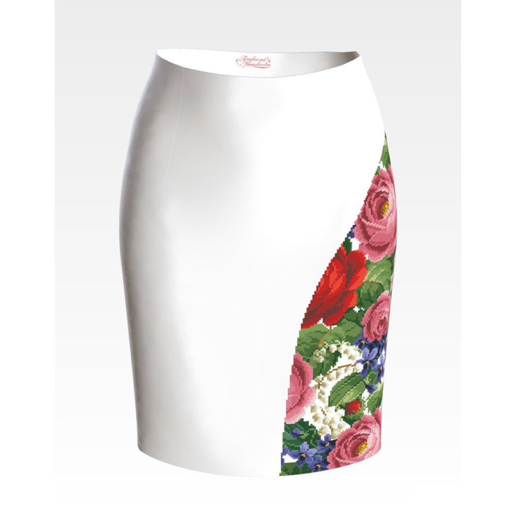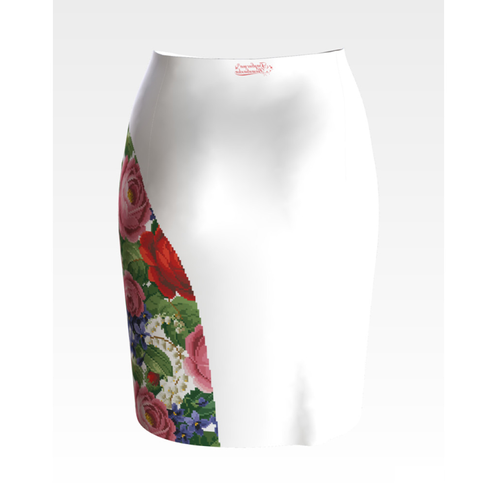 Заготовка для вишивки жіночої спідниці Розкішні троянди, фіалки, конвалії призначена для часткової зашивки бісером або нитками. Схема надрукована на шовковій тканині білого кольору екологічно чистими стійкими фарбами, що не змиваються після прання. Відрізи розкроєні з урахуванням запасів для зручного вишивання та подальшого пошиття виробу.