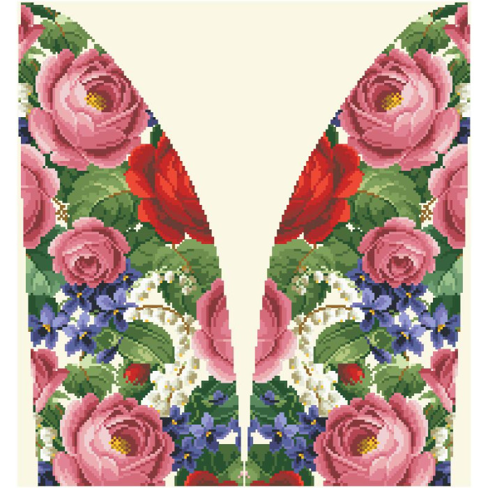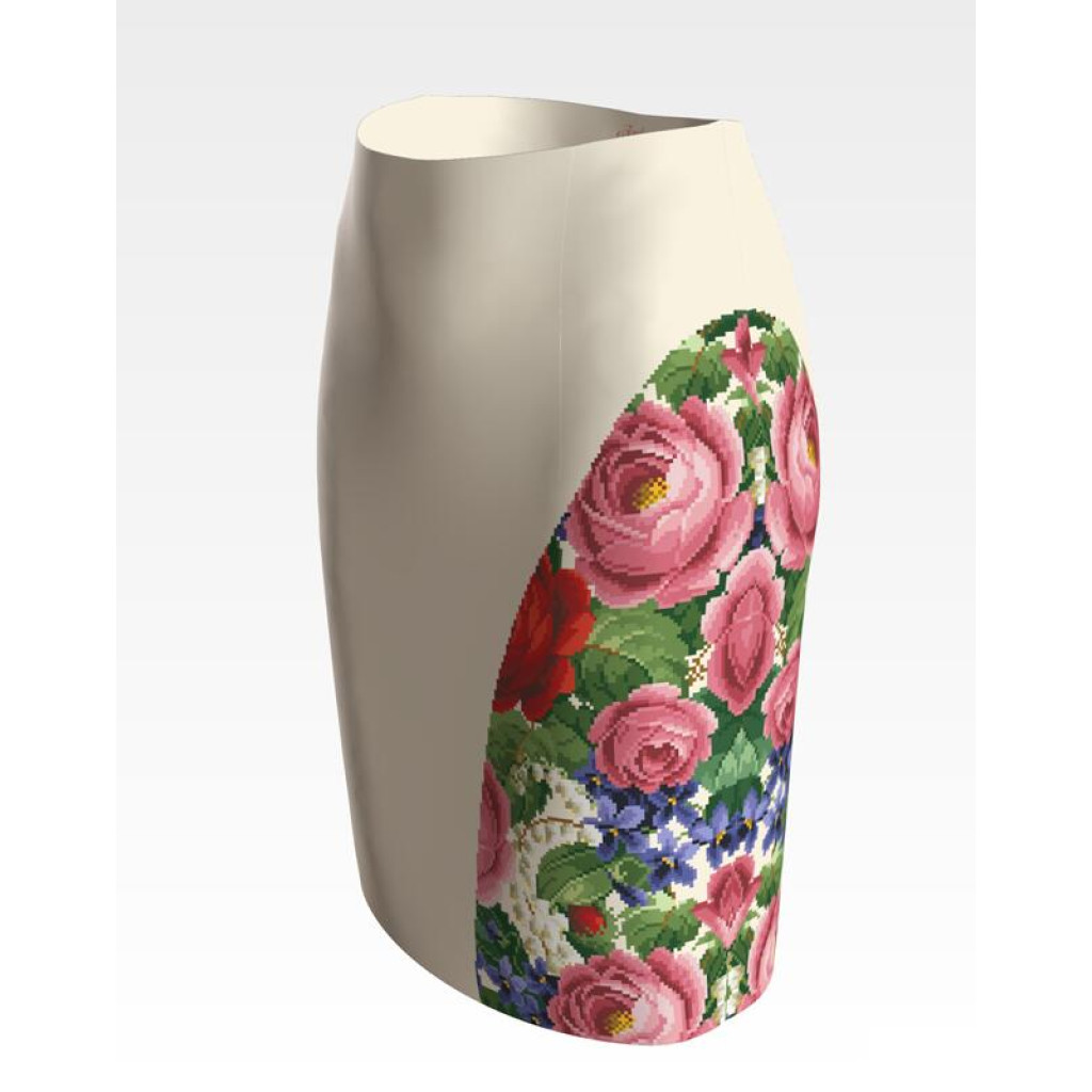 Заготовка для вишивки жіночої спідниці Розкішні троянди, фіалки, конвалії призначена для часткової зашивки бісером або нитками. Схема надрукована на шовковій тканині бежевого кольору екологічно чистими стійкими фарбами, що не змиваються після прання. Відрізи розкроєні з урахуванням запасів для зручного вишивання та подальшого пошиття виробу.