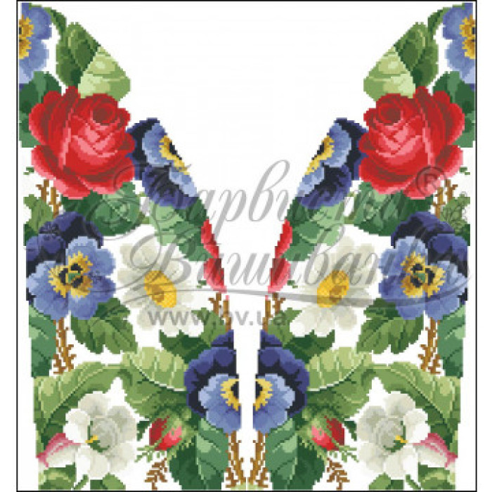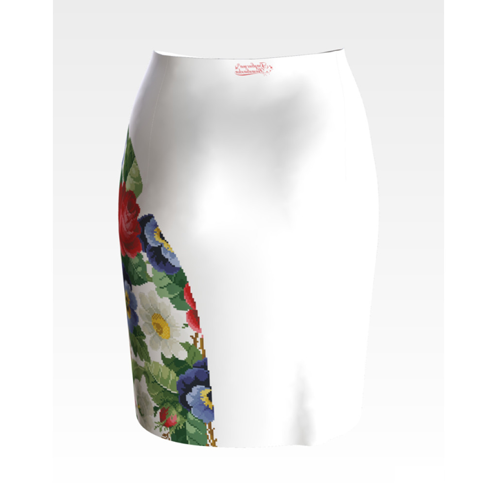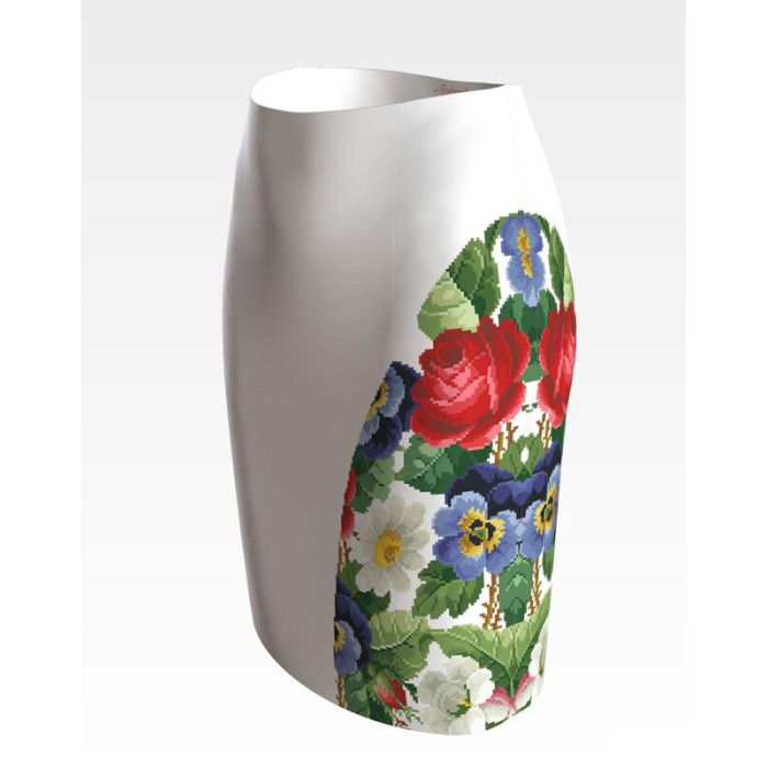 Заготовка для вишивки жіночої спідниці Троянди, братки, петунії, ромашки призначена для часткової зашивки бісером або нитками. Схема надрукована на шовковій тканині білого кольору екологічно чистими стійкими фарбами, що не змиваються після прання. Відрізи розкроєні з урахуванням запасів для зручного вишивання та подальшого пошиття виробу.