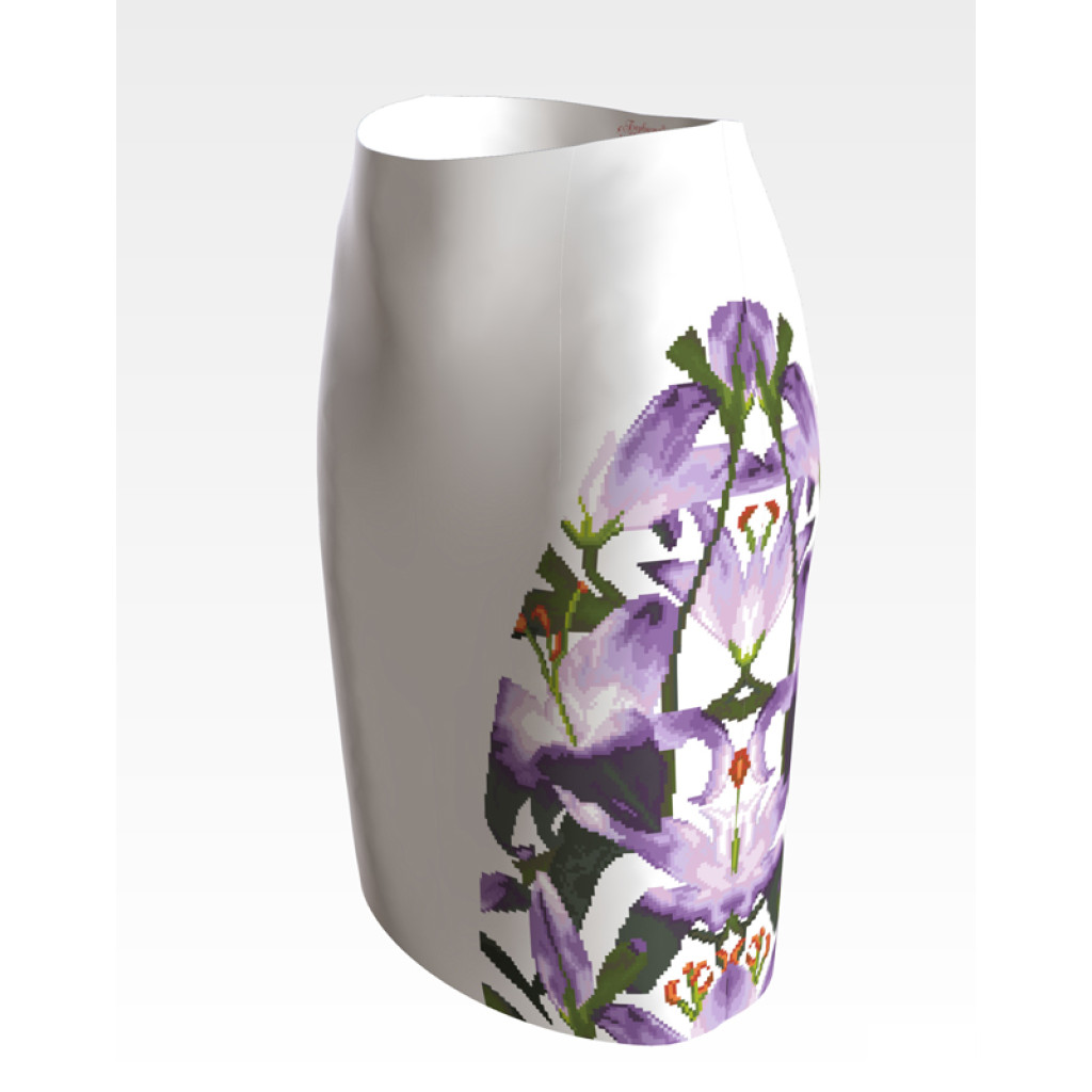 Заготовка для вишивки жіночої спідниці Місячні лілії призначена для часткової зашивки бісером або нитками. Схема надрукована на білому габардині екологічно чистими стійкими фарбами, що не змиваються після прання. Відрізи розкроєні з урахуванням запасів для зручного вишивання та подальшого пошиття виробу.