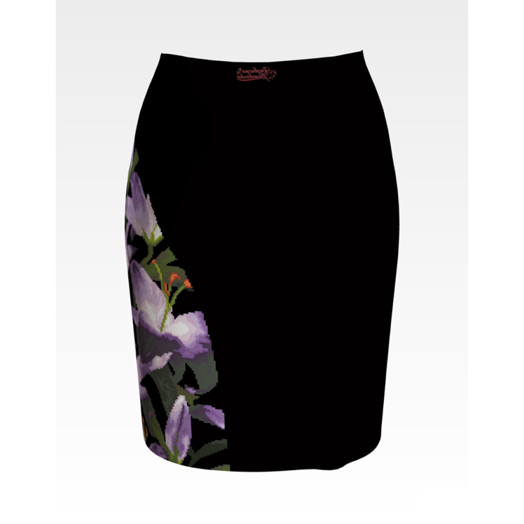 Заготовка для вишивки жіночої спідниці Місячні лілії призначена для часткової зашивки бісером або нитками. Схема надрукована на шовковій тканині чорного кольору екологічно чистими стійкими фарбами, що не змиваються після прання. Відрізи розкроєні з урахуванням запасів для зручного вишивання та подальшого пошиття виробу.