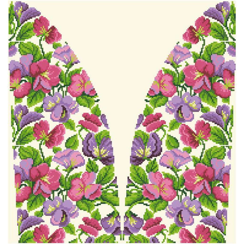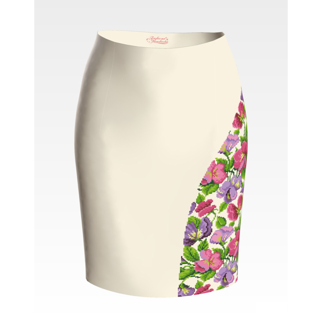 Заготовка для вишивки жіночої спідниці Фіалки призначена для часткової зашивки бісером або нитками. Схема надрукована на домотканому полотні бежевого кольору екологічно чистими стійкими фарбами, що не змиваються після прання. Відрізи розкроєні з урахуванням запасів для зручного вишивання та подальшого пошиття виробу.