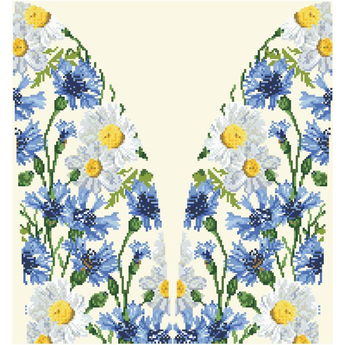 Заготовка для вишивки жіночої спідниці Волошки і ромашки призначена для часткової зашивки бісером або нитками. Схема надрукована на домотканому полотні бежевого кольору екологічно чистими стійкими фарбами, що не змиваються після прання. Відрізи розкроєні з урахуванням запасів для зручного вишивання та подальшого пошиття виробу.