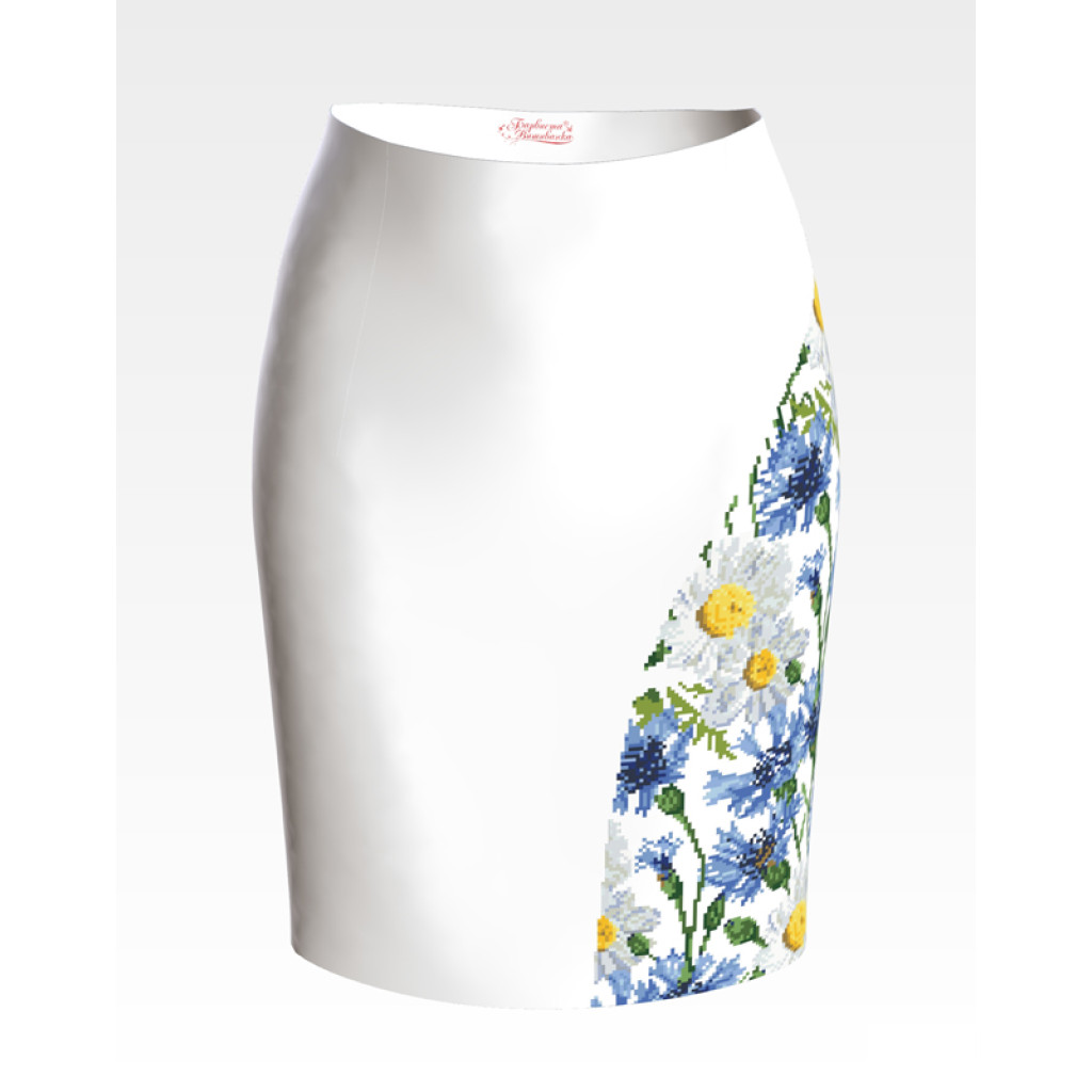 Заготовка для вишивки жіночої спідниці Волошки і ромашки призначена для часткової зашивки бісером або нитками. Схема надрукована на шовковій тканині білого кольору екологічно чистими стійкими фарбами, що не змиваються після прання. Відрізи розкроєні з урахуванням запасів для зручного вишивання та подальшого пошиття виробу.