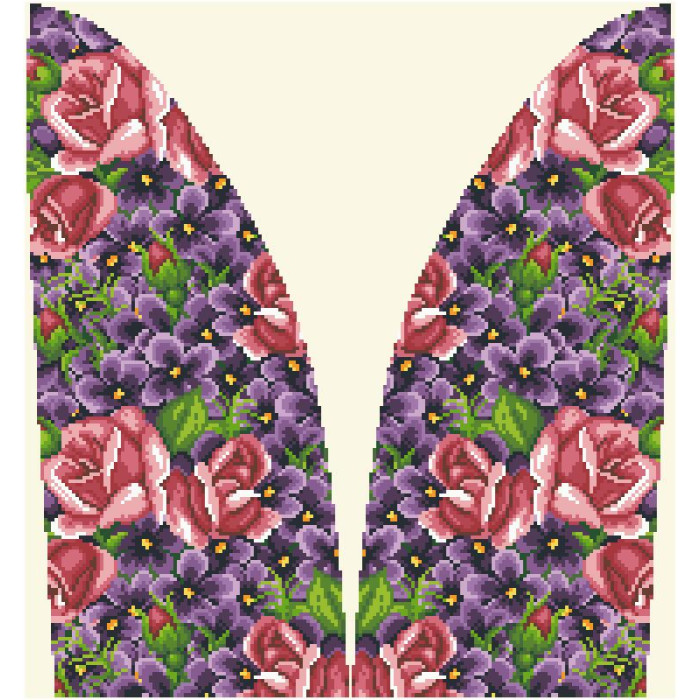 Заготовка для вишивки жіночої спідниці Фіалки і троянди призначена для часткової зашивки бісером або нитками. Схема надрукована на домотканому полотні бежевого кольору екологічно чистими стійкими фарбами, що не змиваються після прання. Відрізи розкроєні з урахуванням запасів для зручного вишивання та подальшого пошиття виробу.