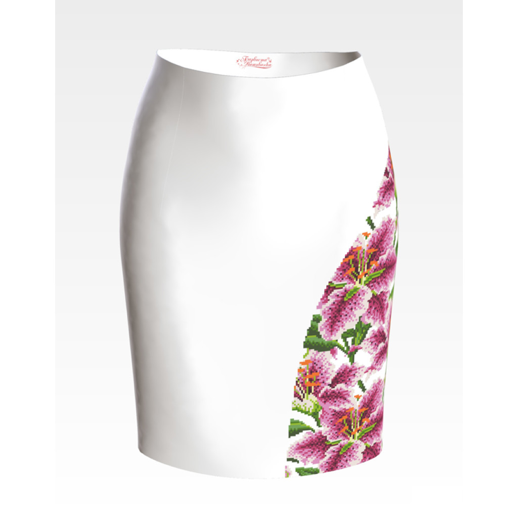 Заготовка для вишивки жіночої спідниці Розкішні лілії призначена для часткової зашивки бісером або нитками. Схема надрукована на шовковій тканині білого кольору екологічно чистими стійкими фарбами, що не змиваються після прання. Відрізи розкроєні з урахуванням запасів для зручного вишивання та подальшого пошиття виробу.
