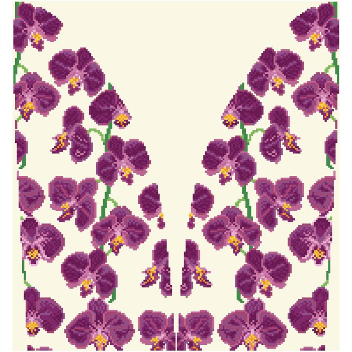 Заготовка для вишивки жіночої спідниці Орхідеї кольору фуксії призначена для часткової зашивки бісером або нитками. Схема надрукована на атлас-котоні бежевого кольору екологічно чистими стійкими фарбами, що не змиваються після прання. Відрізи розкроєні з урахуванням запасів для зручного вишивання та подальшого пошиття виробу.