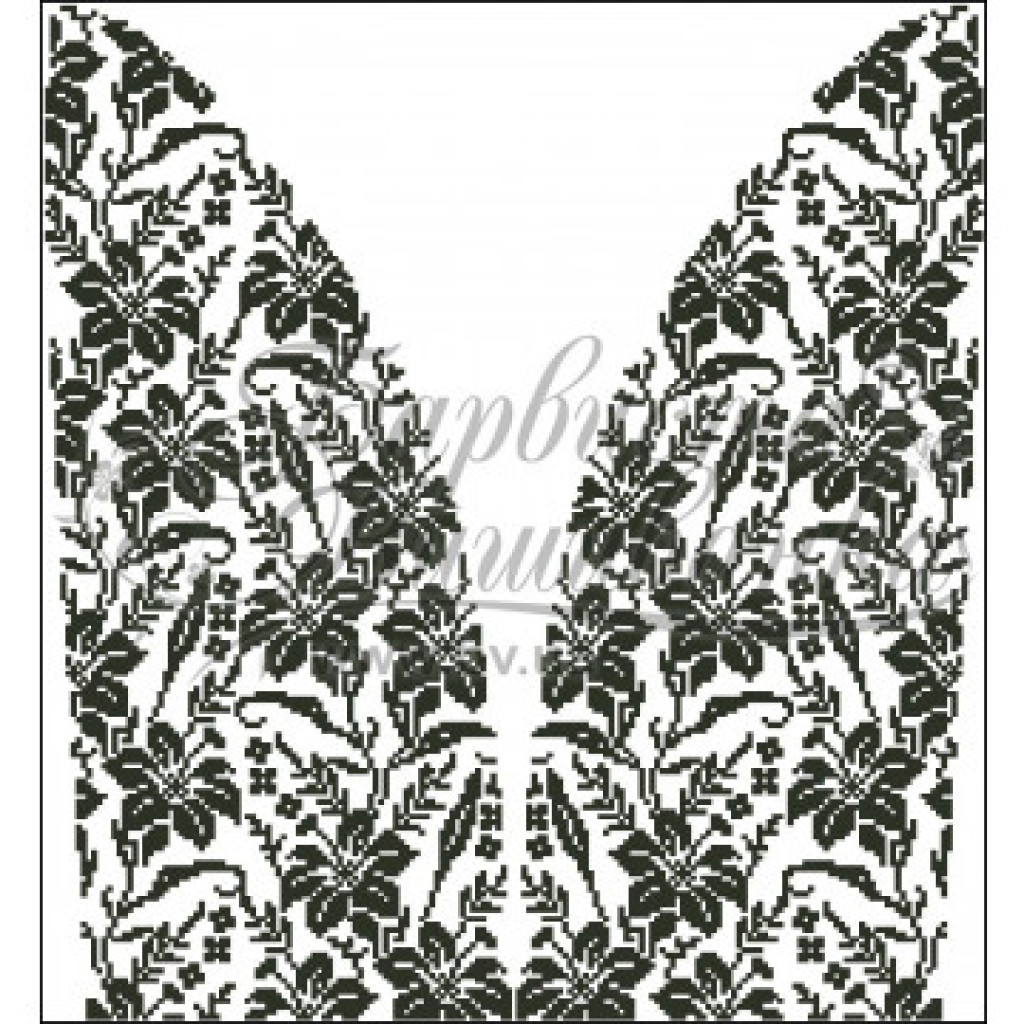 Заготовка для вишивки жіночої спідниці Лілії. Орнамент призначена для часткової зашивки бісером або нитками. Схема надрукована на шовковій тканині білого кольору екологічно чистими стійкими фарбами, що не змиваються після прання. Відрізи розкроєні з урахуванням запасів для зручного вишивання та подальшого пошиття виробу.