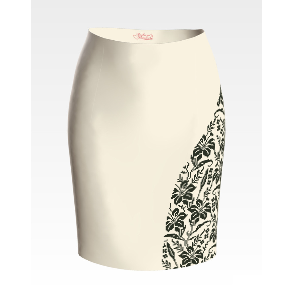 Заготовка для вишивки жіночої спідниці Лілії. Орнамент призначена для часткової зашивки бісером або нитками. Схема надрукована на шовковій тканині бежевого кольору екологічно чистими стійкими фарбами, що не змиваються після прання. Відрізи розкроєні з урахуванням запасів для зручного вишивання та подальшого пошиття виробу.
